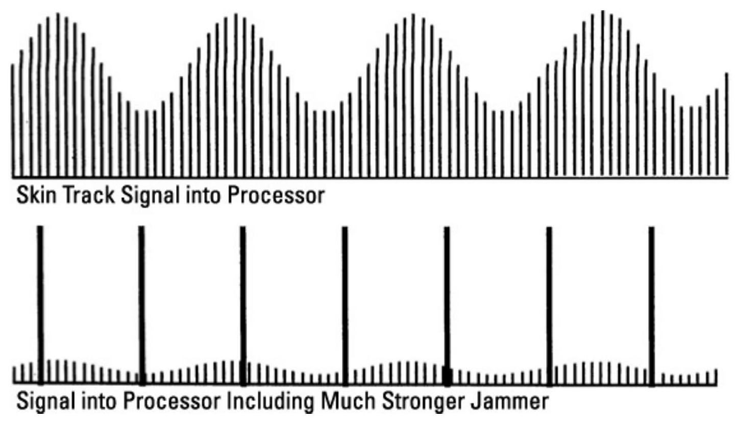 解决方案是调整干扰机的覆盖脉冲,使其覆盖威胁雷达自身的脉冲,从而使雷达等于“自我压制”。