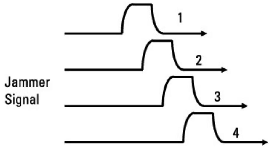 如果威胁雷达采用伪随机脉冲重复间隔,即抖动PRF,就无法预测下一个脉冲的时间。这使RGPI干扰技术不可行。同时,覆盖脉冲干扰(需要预测脉冲时序)也无法高效生成(见第4.2.20节)。