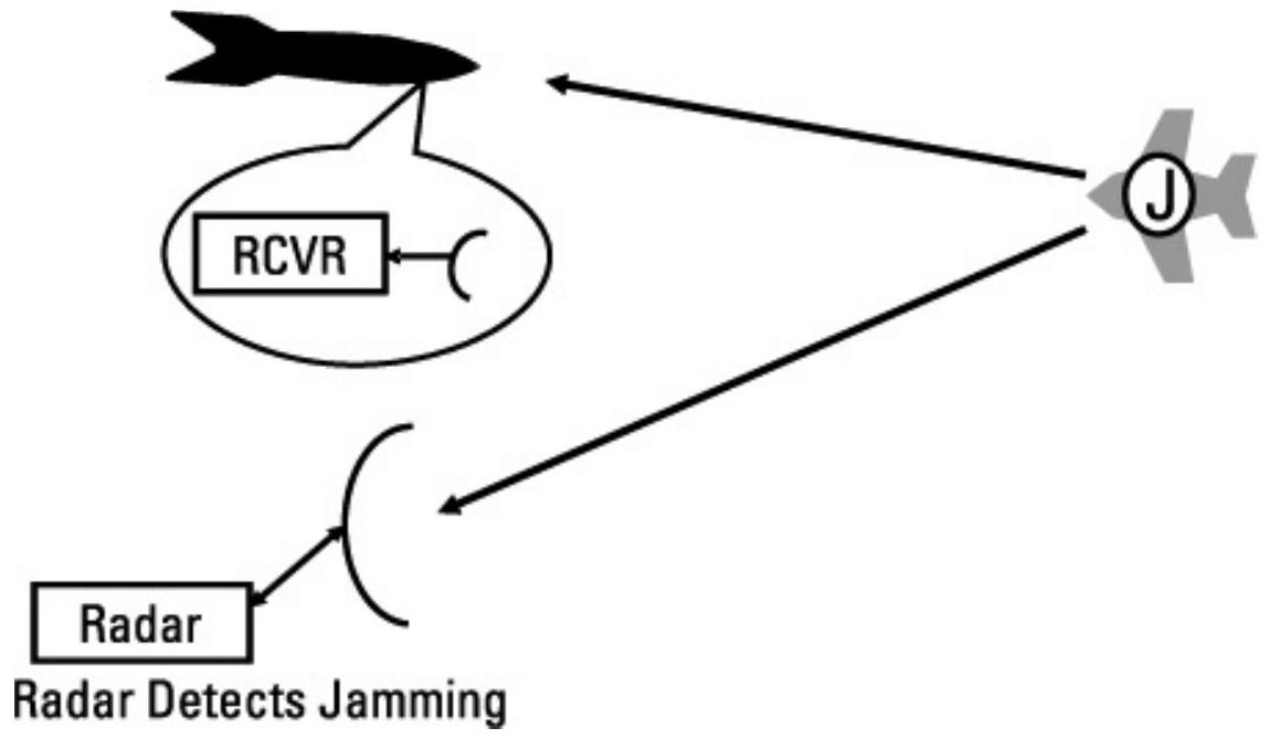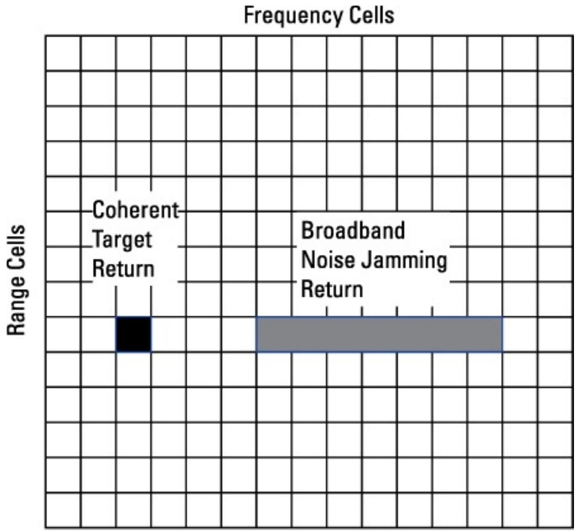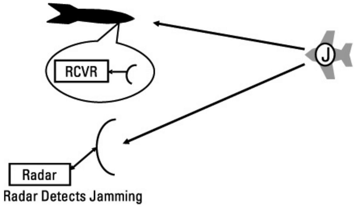 脉冲多普勒(PD)雷达希望接收到落入其滤波器组某一通道的相干信号。如果干扰信号填充多个通道,或包含强烈的杂散分量,雷达将识别其受到干扰,并可能启动“寻源制导”(HOJ)。