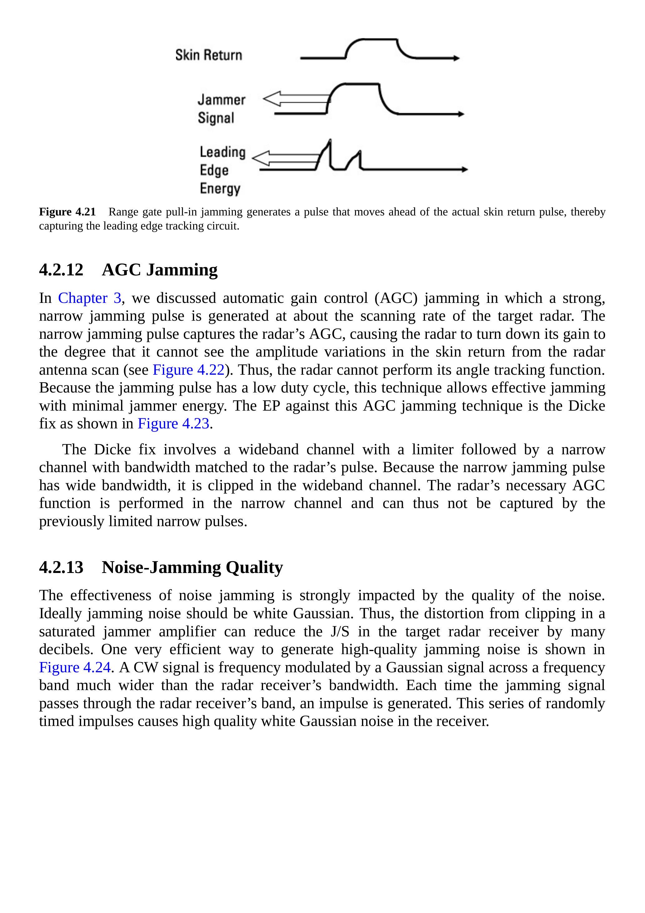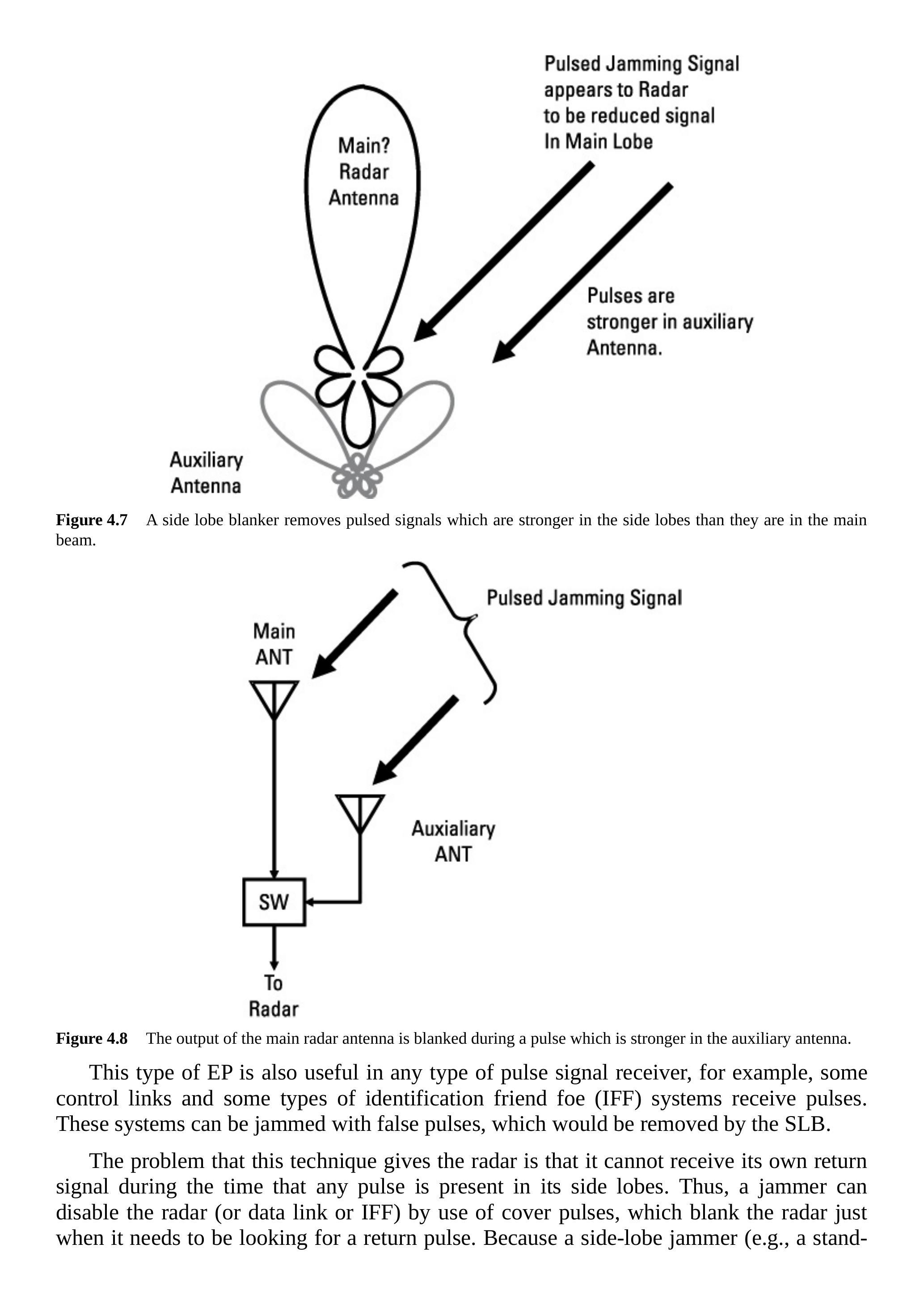 单脉冲雷达不会被第3章所述的部分干扰技术成功压制,反而有些干扰会增强其角度跟踪(见第4.2.5节)。
