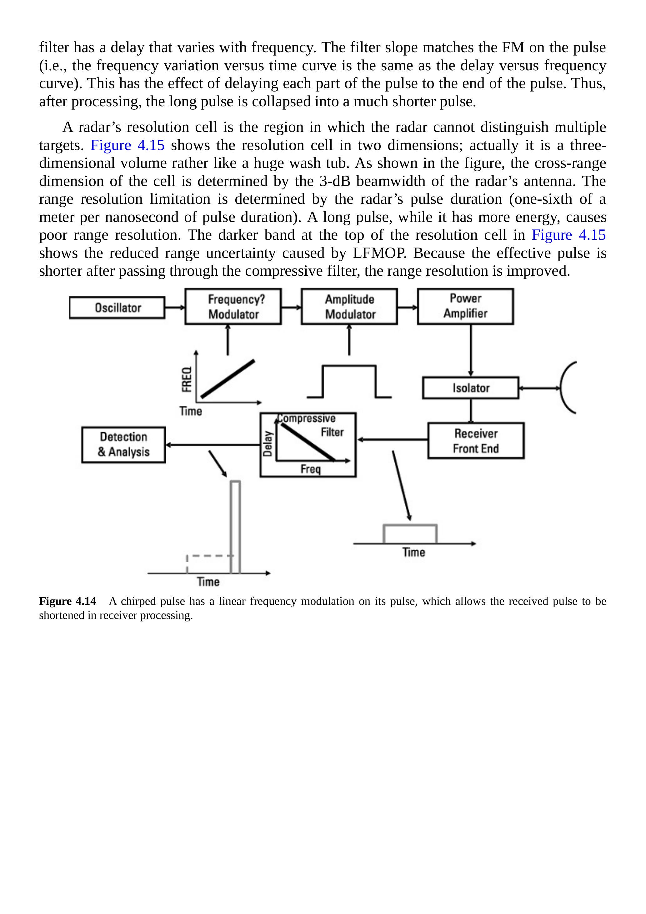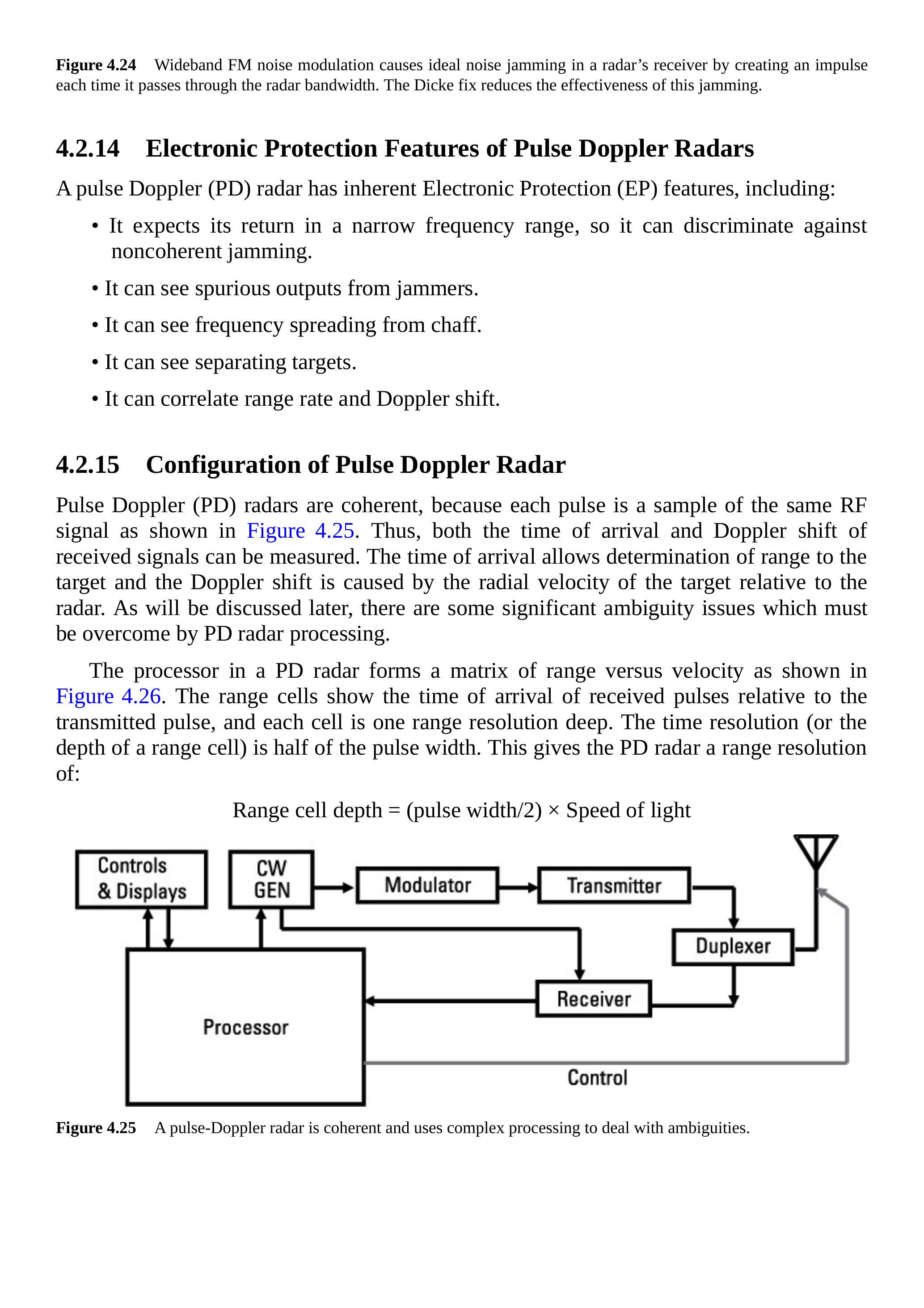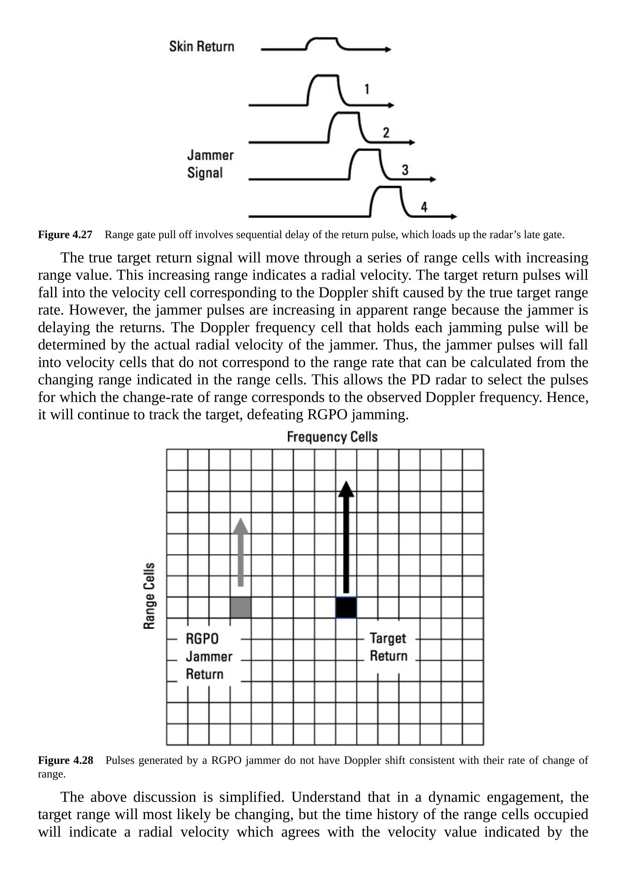 它还可以检测分离的信号(如距离门牵引干扰),并跟踪与其接收到的多普勒频移相对应的距离变化率的信号(见第4.2.12节、第4.2.14节和第4.2.15节)。
