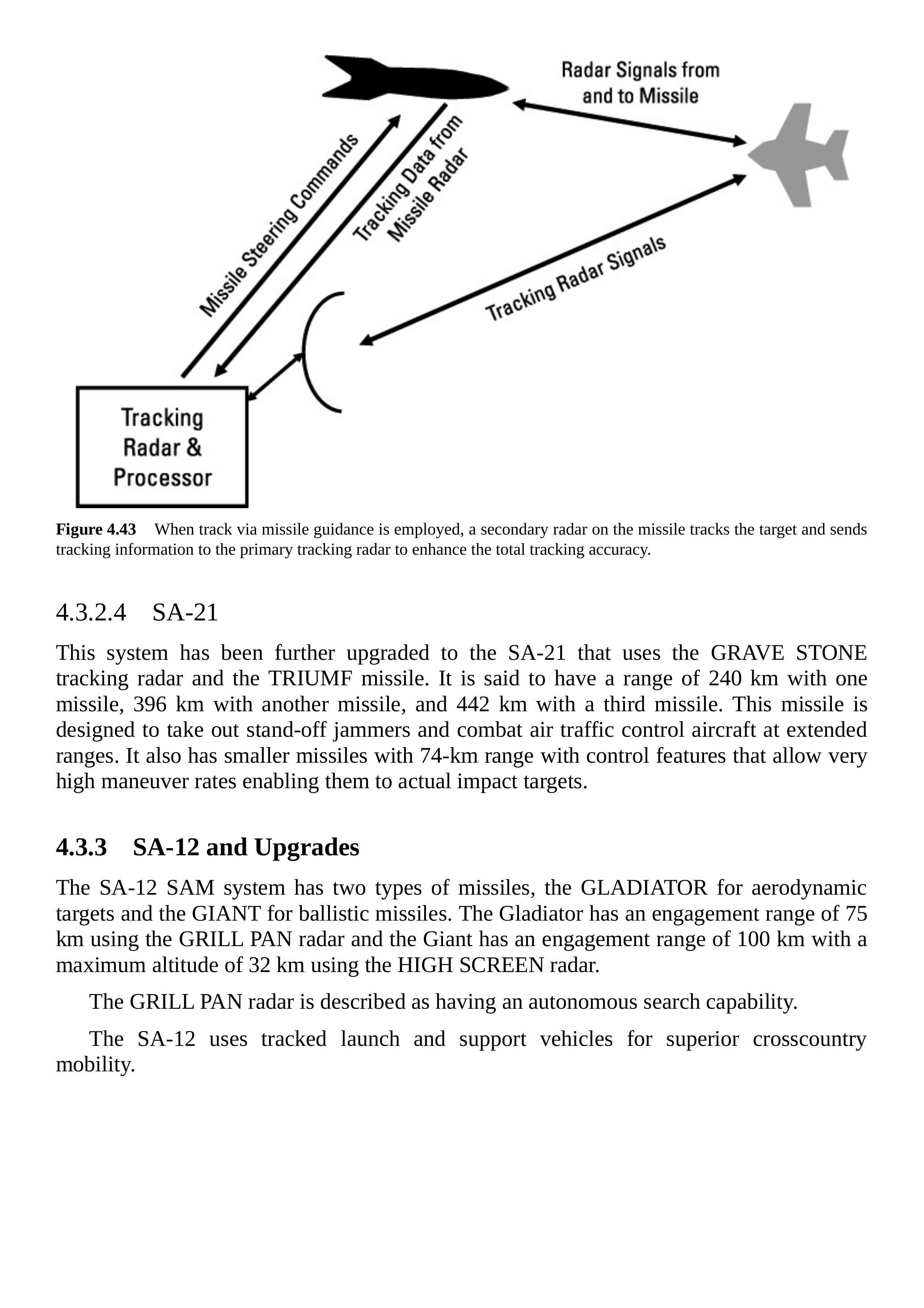 该型号被描述为马赫6导弹,可拦截马赫8.5的来袭目标。它使用TOMB STONE跟踪雷达,并具备“导弹中继跟踪”(track-via-missile)能力,如图4.43所示。