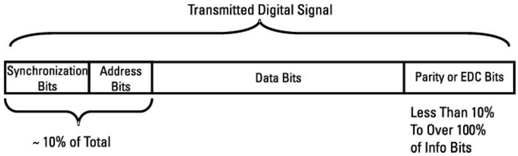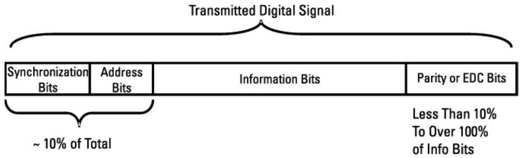 如上文所述,为了保护信息保真度,会在传输的数字数据中增加额外的比特。这在包括压制干扰在内的敌对环境中尤为重要。这些额外比特可以是奇偶校验比特,也可以是错误检测与纠正码。奇偶校验比特用于验证是否正确接收了信息。奇偶校验比特越多,如果所有校验比特均正确接收,则越能确信接收数据块中没有错误。