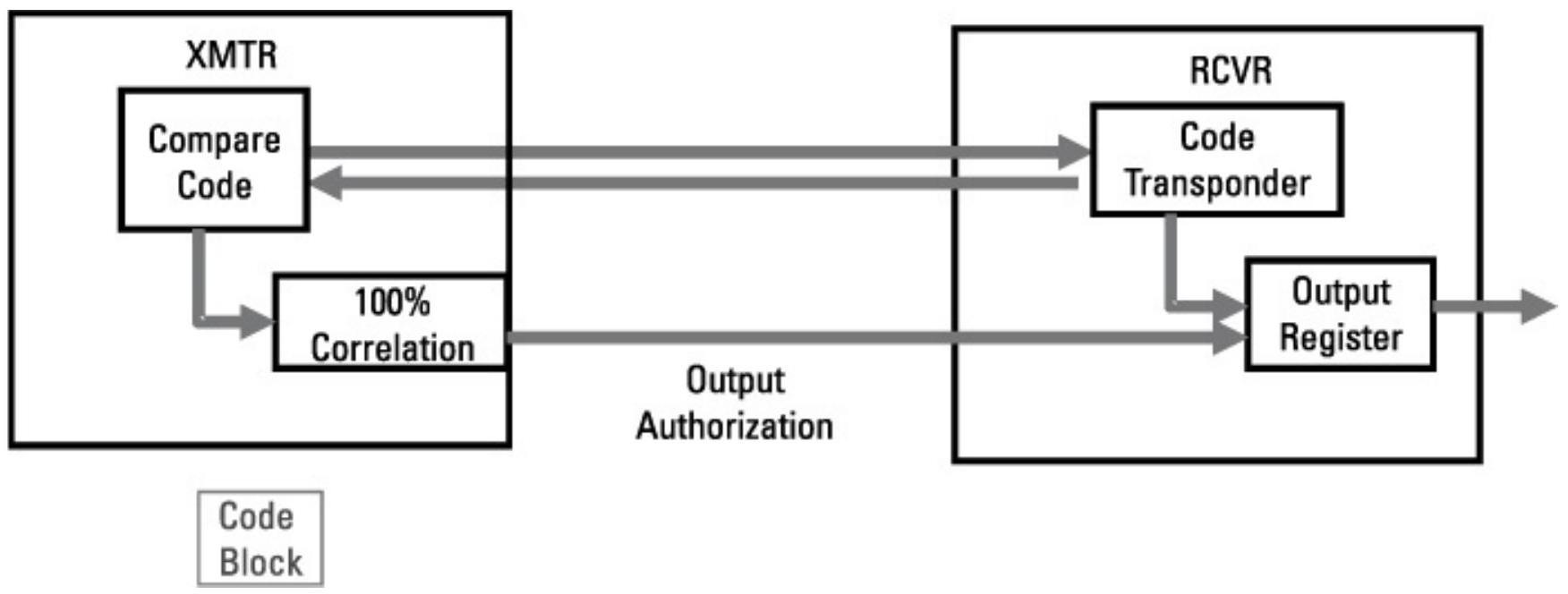 图5.8 重传数据验证要求每个信息代码块都要返回发射机,在此与原始数据进行比较。如果正确,则发送授权信号给接收机,允许其将该代码块写入输出寄存器。