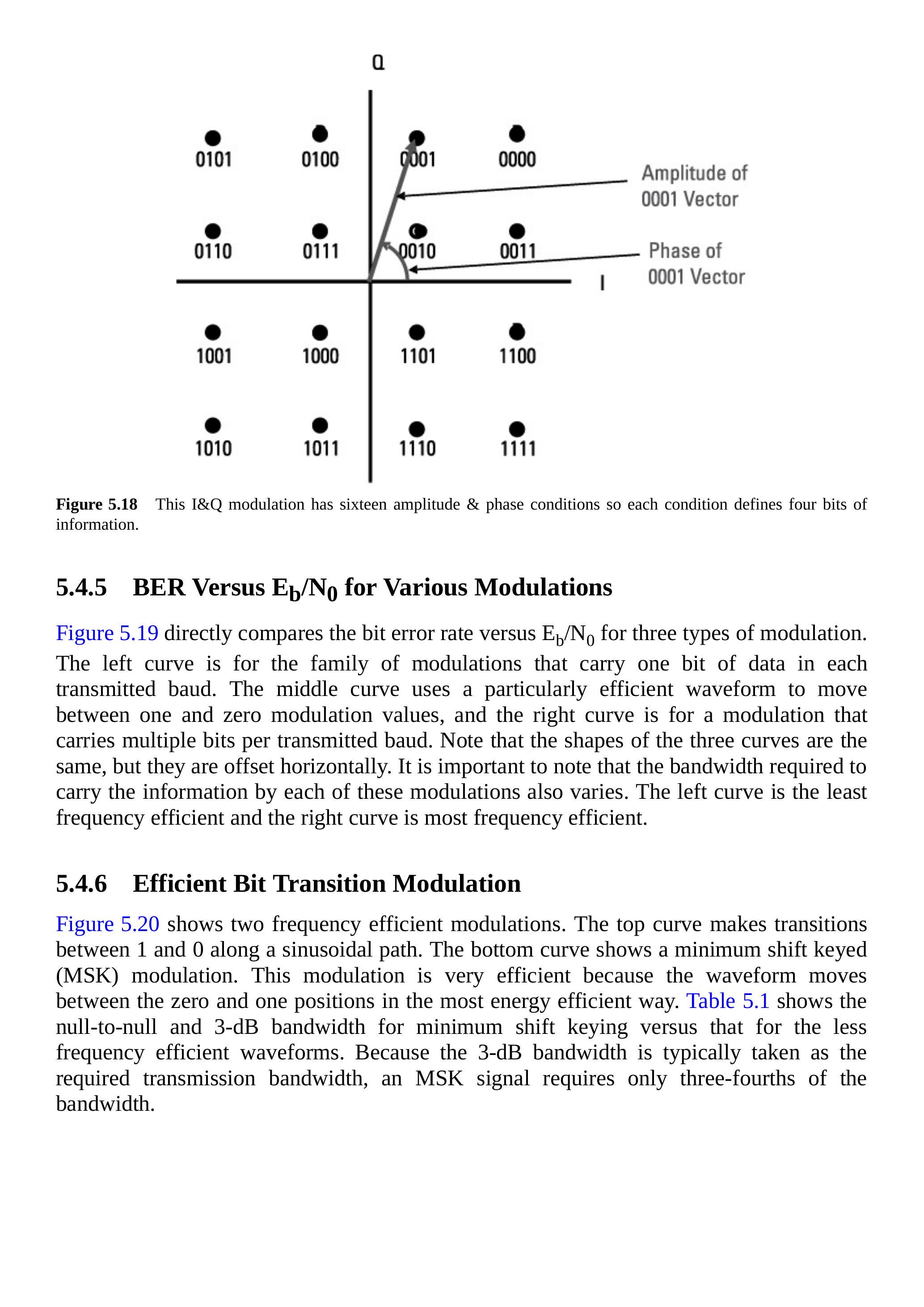 图5.18 I&Q调制具有16种幅度和相位条件,每种条件定义4比特信息。