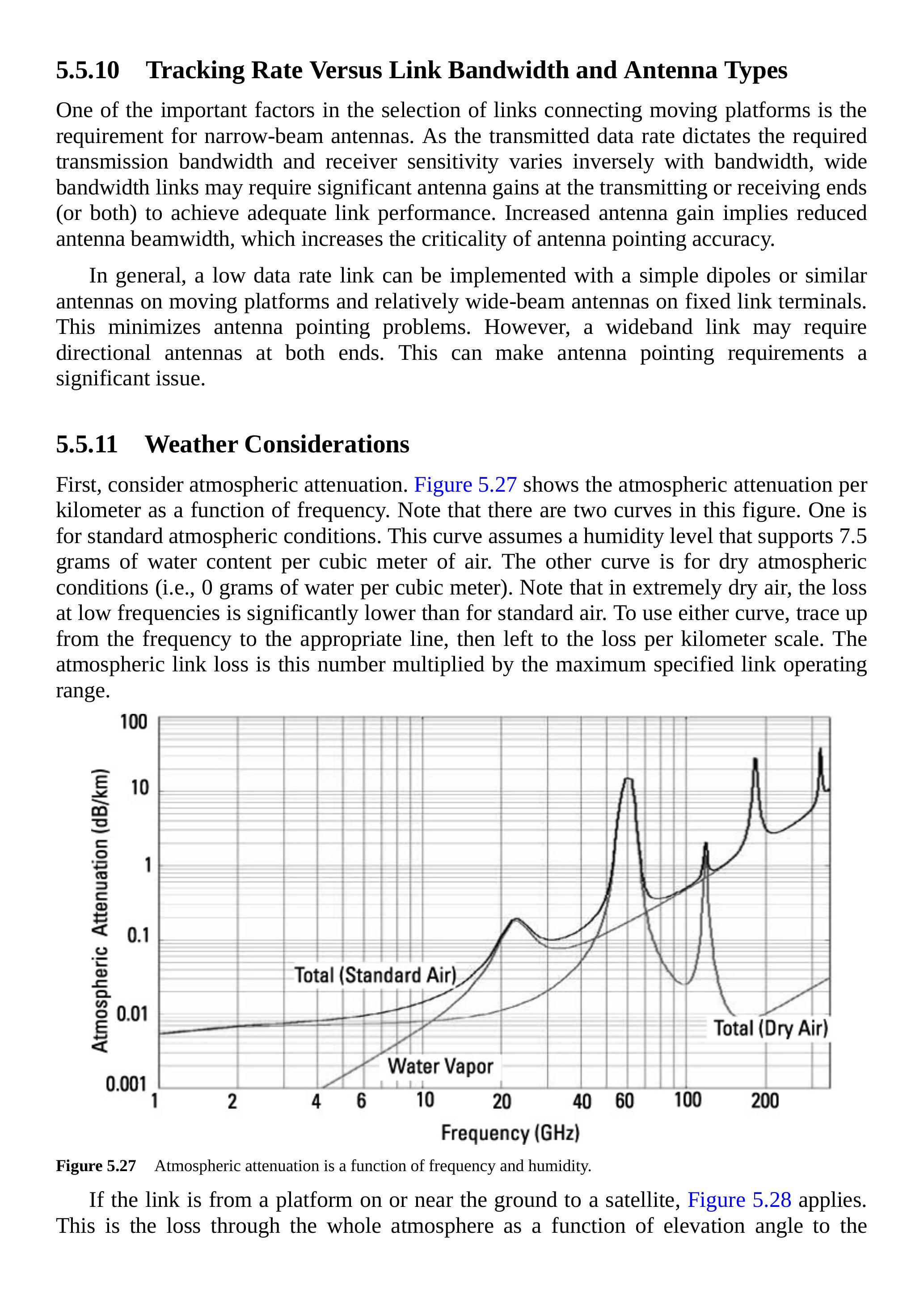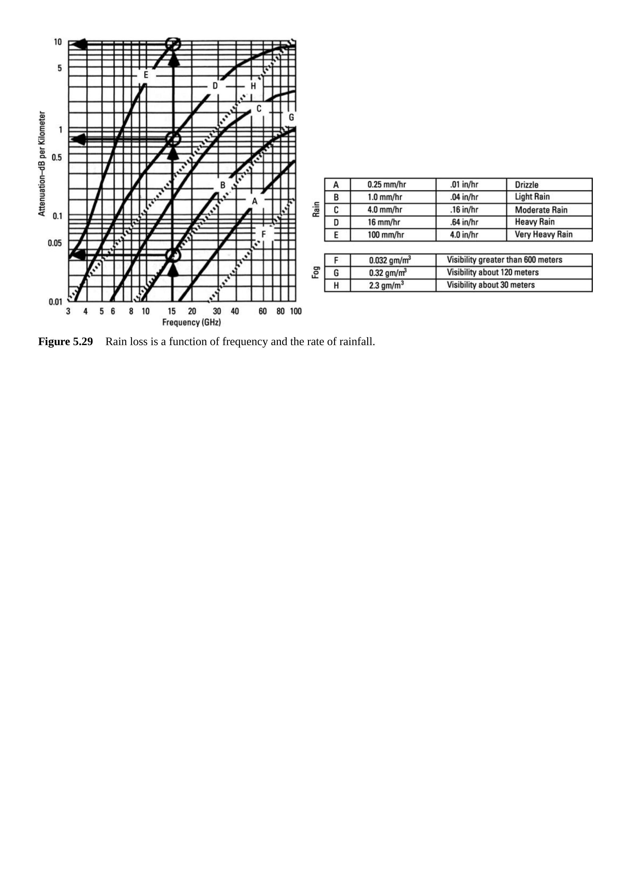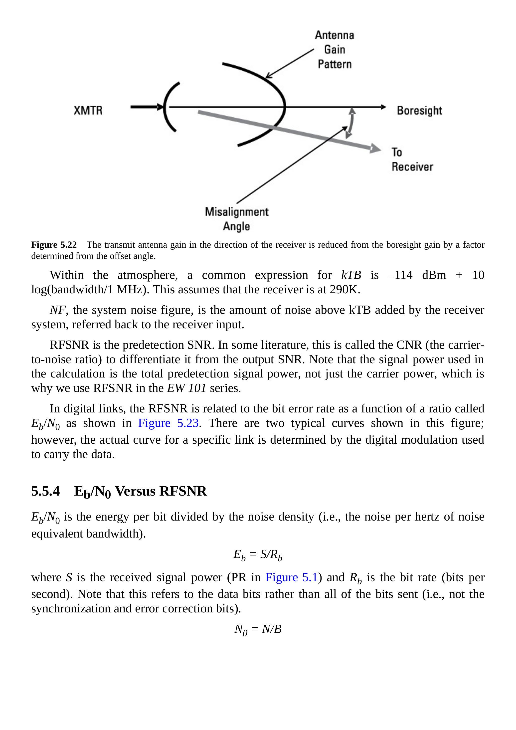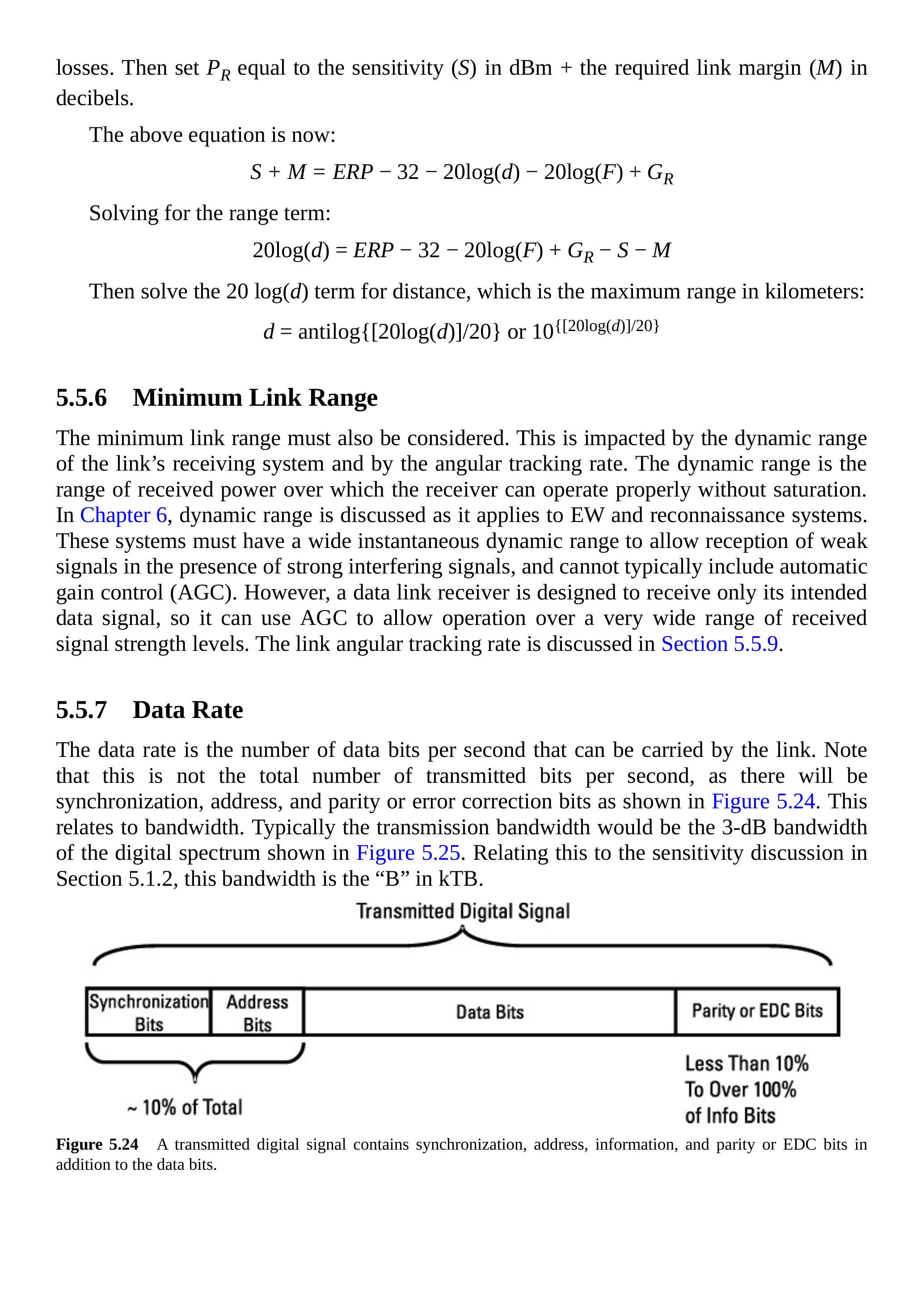 图5.21 数据链路接收机的接收功率是发射机与接收机之间所有增益与损耗的函数。
