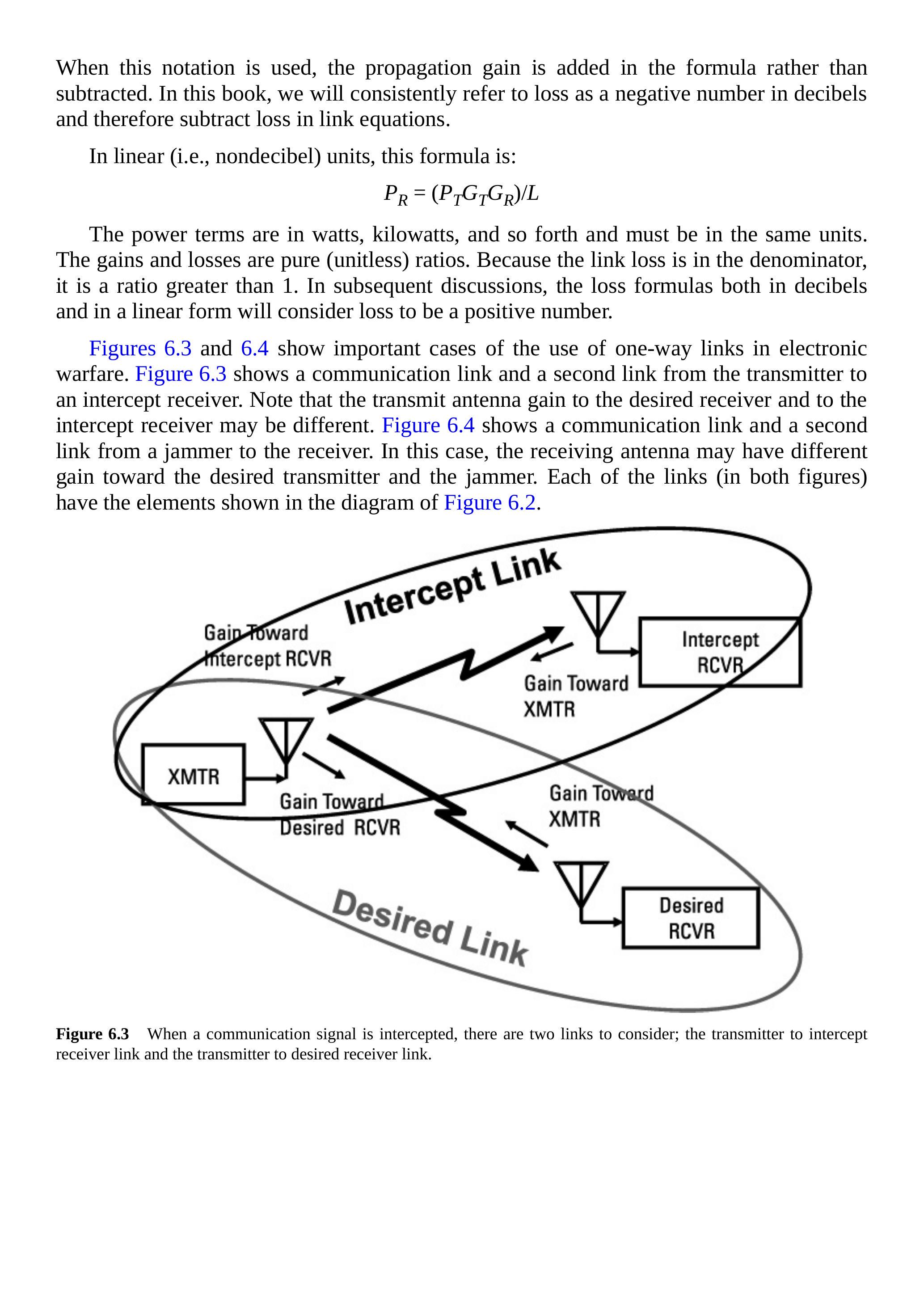 图 6.2 单向链路方程表示接收功率作为其他链路要素的函数。