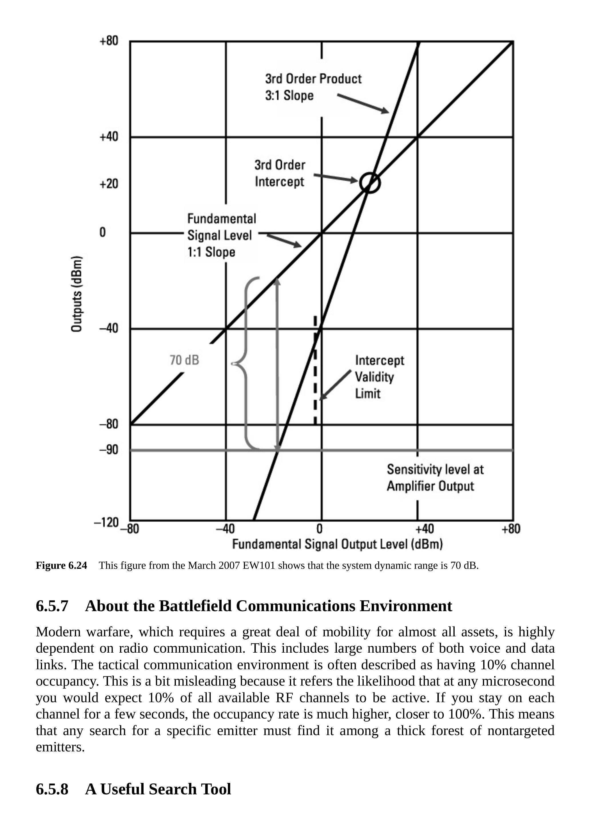 本章的其他部分涉及对常规通信信号的截获、辐射源定位以及压制干扰。对于更复杂的信号(主要是低截获概率信号)的电子战功能,将在第7章中进行讨论。