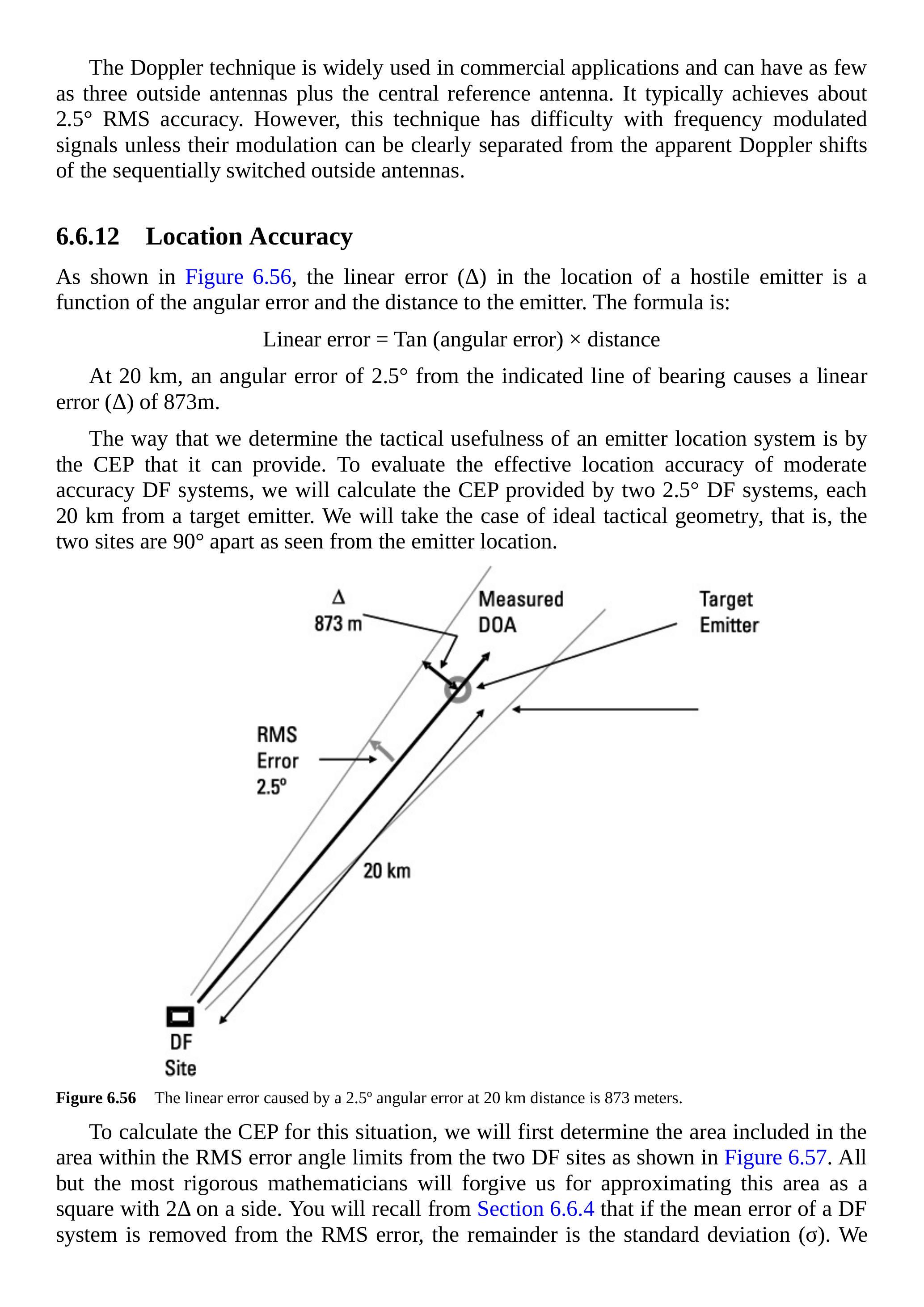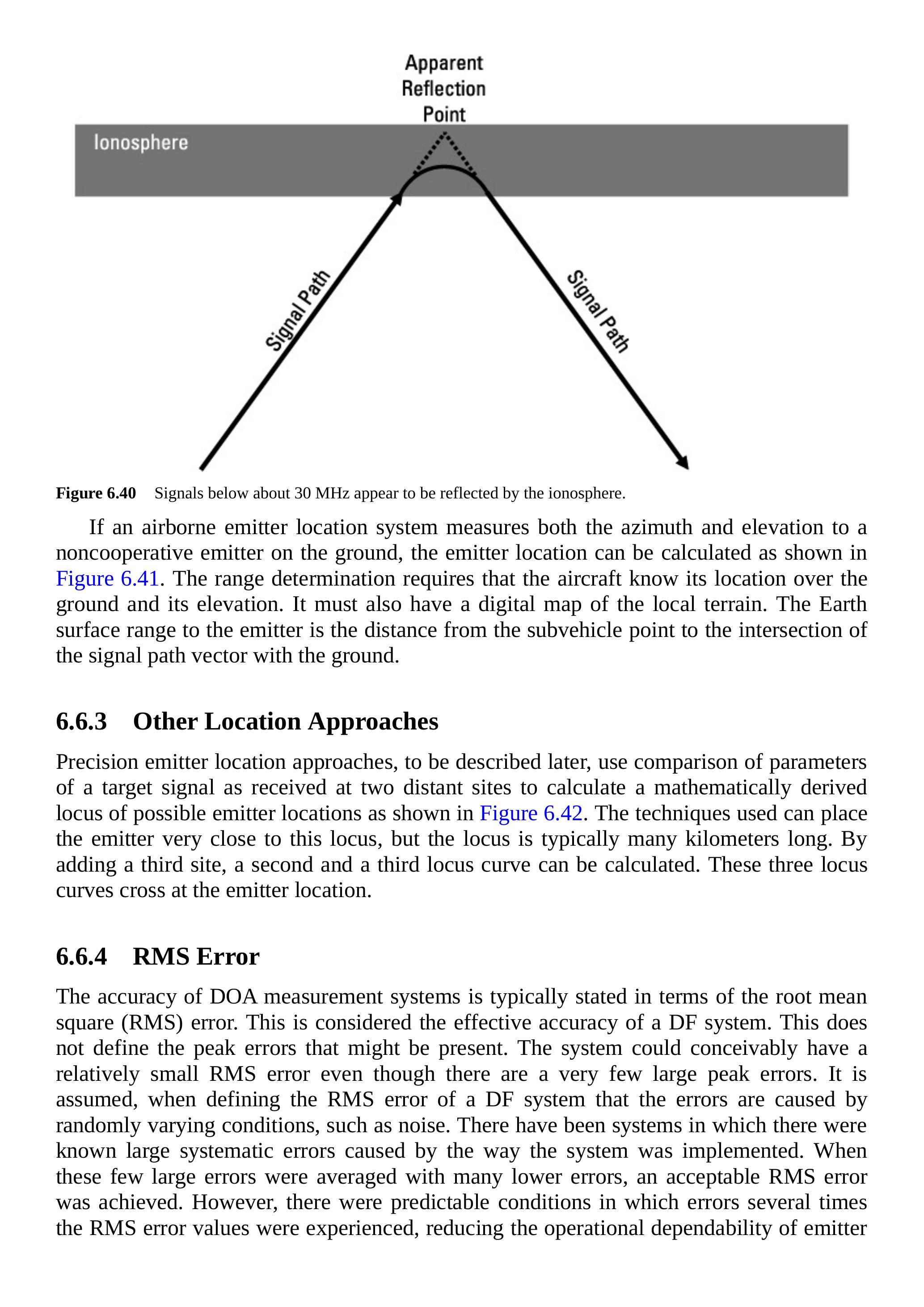 [1] Gibson, J. D., (ed.), Communications Handbook, Ch. 84: Boca Raton, FL: CRC Press, 1997. [2] Chestnut, P., "Emitter Location Accuracy Using TDOA and Differential Doppler," IEEE Transactions on Aerospace and Electronic Systems, Vol. 18, March 1982. [3] Adamy, D., EW 102: A Second Course in Electronic Warfare, Norwood, MA: Artech House, 2004. [4] Wegner, L. H., "On the Accuracy Analysis of Airborne Techniques for Passively Locating Electromagnetic Emitters," RAND Report, R-722-PR, June 1971.
