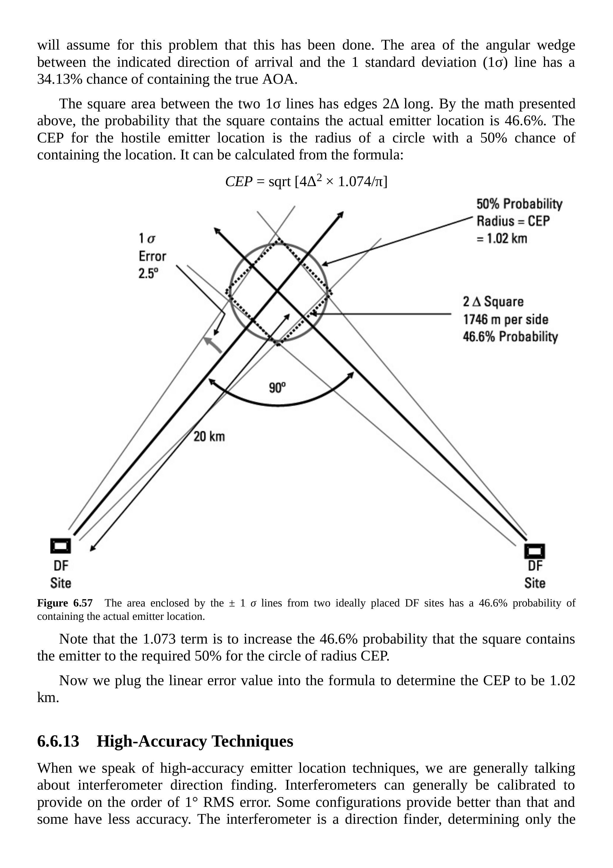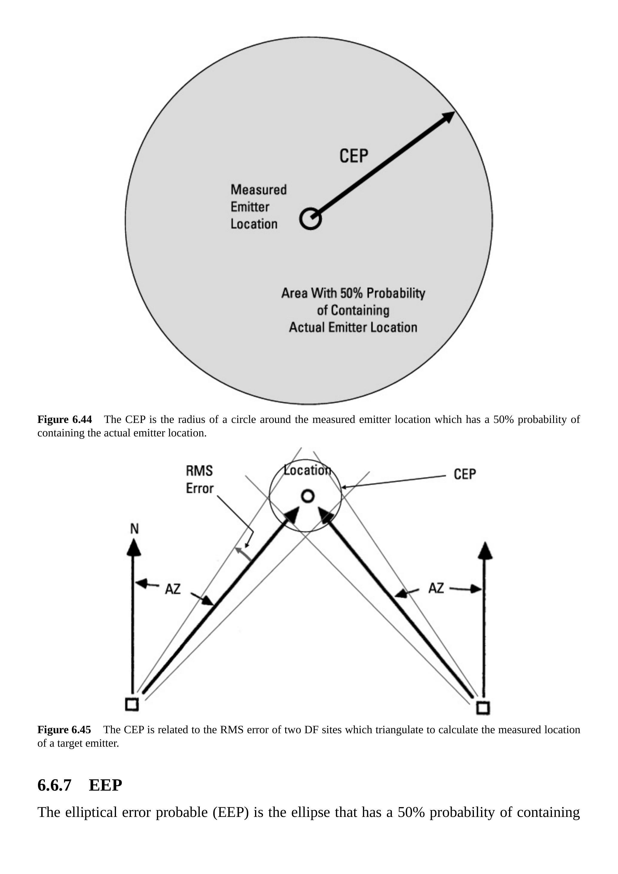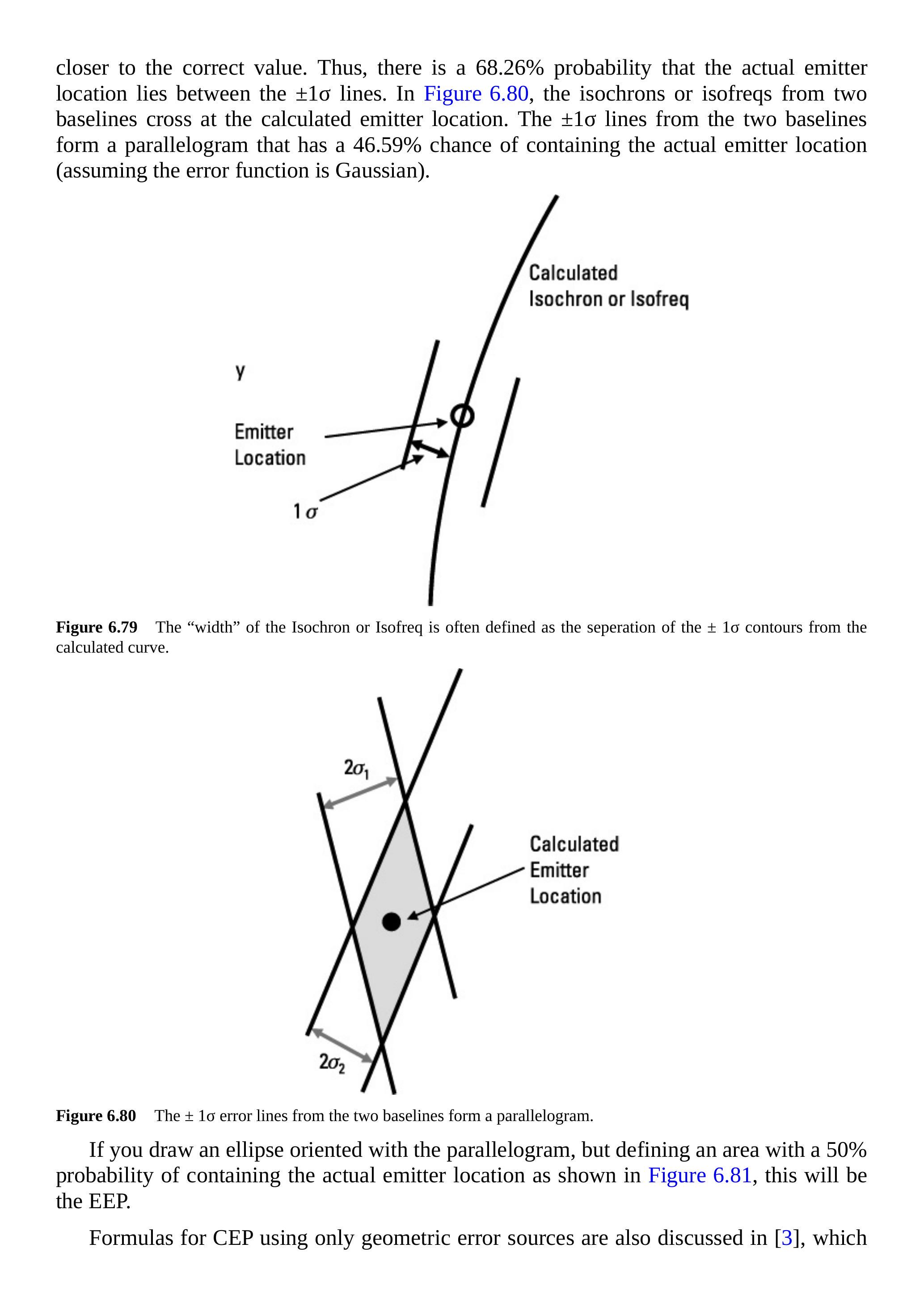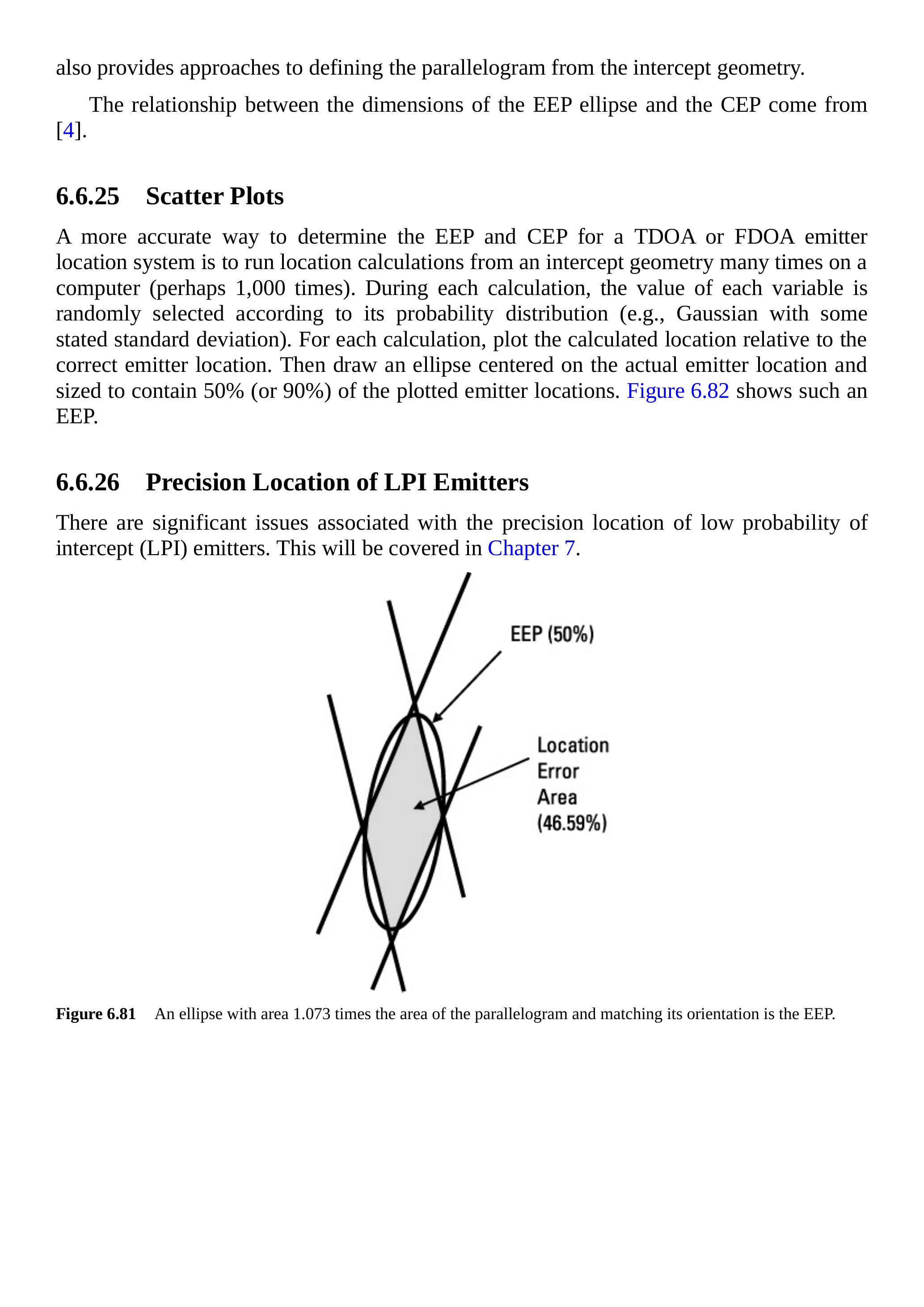 如果绘制一个与平行四边形方向一致的椭圆,但定义一个包含实际发射机位置概率为 \(50\%\) 的区域,如图 6.81 所示,这将是 EEP。