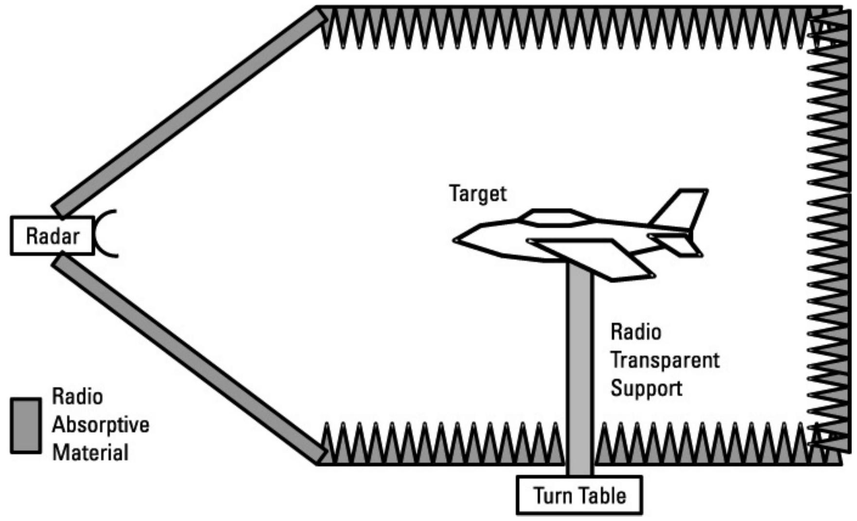 目标被放置在消声室中心并旋转,以生成来自所有重要方位角的 RCS 数据。这些数据随后被分析和表征,用于开发雷达目标识别表。