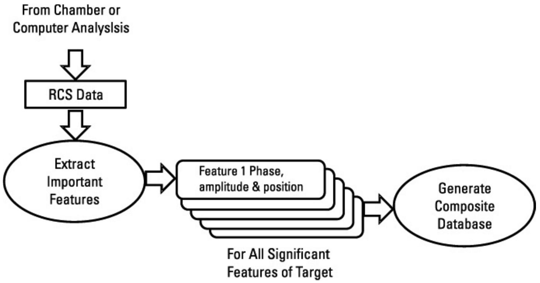 图 8.28 目标的计算机模型经过分析以提取重要特征。每个特征的相位、幅度、位置和多普勒频移被整合到复合数据库中。