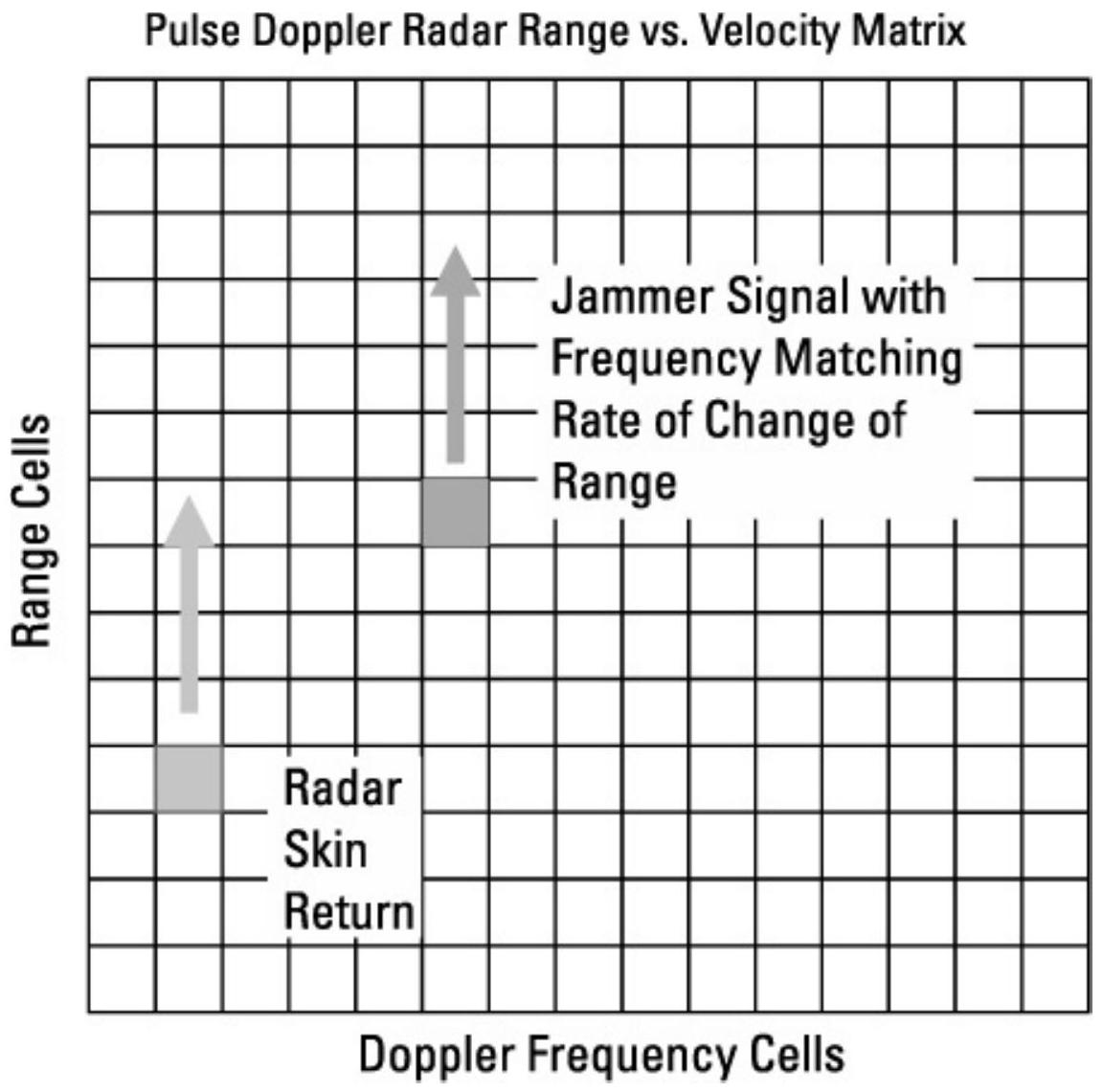 由于装备了 DRFM 的干扰器可以生成相干干扰信号,脉冲多普勒雷达对干扰信号提供相同的处理增益,因此无法检测到干扰的存在。这不仅提高了 J/S,还阻止了“锁定干扰源”模式的激活。