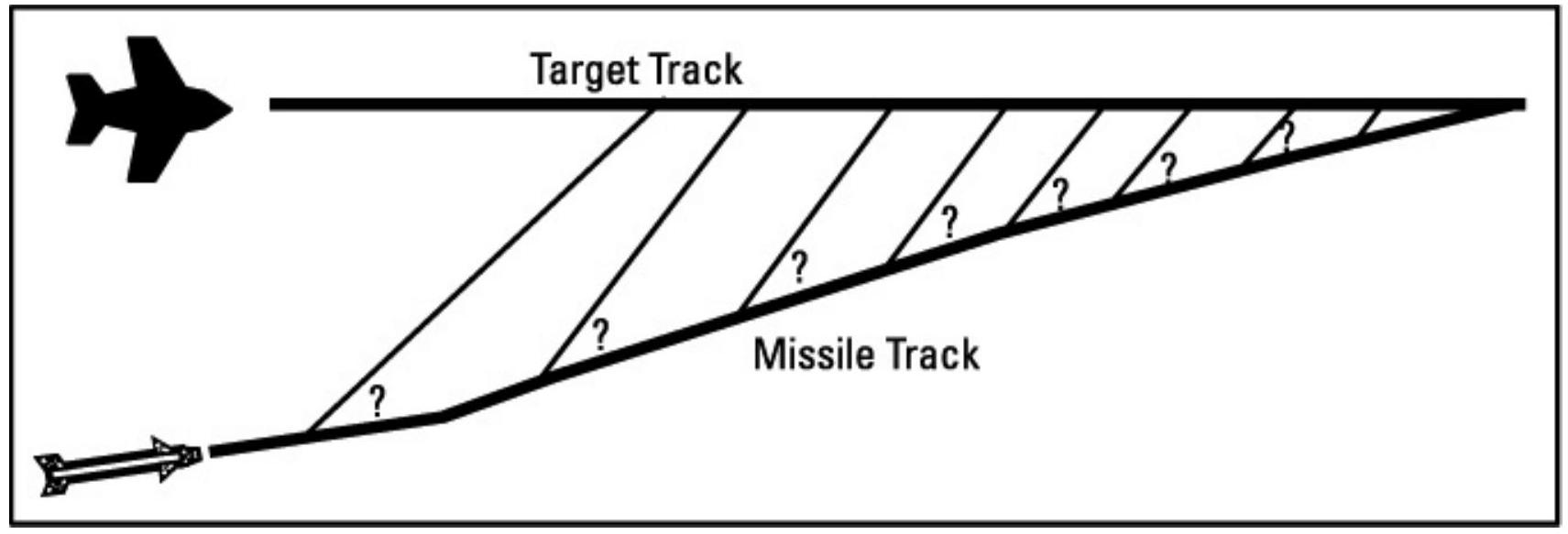 图 9.8 红外导弹采用比例制导,以避免接近目标时需要高g转向。