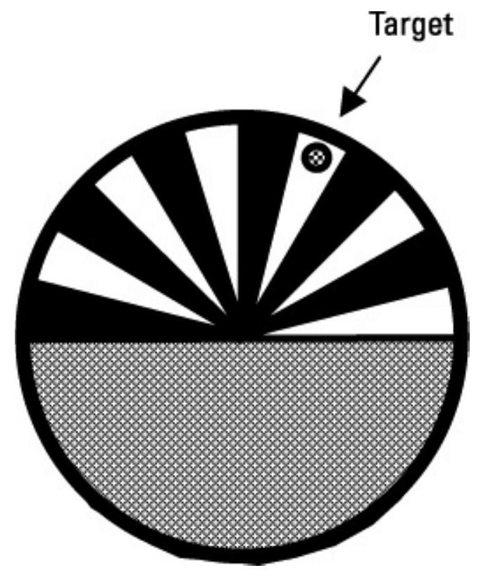 图 9.9 旋转的“旭日”光栅,其一半面积为交替透明和不透明区域。
