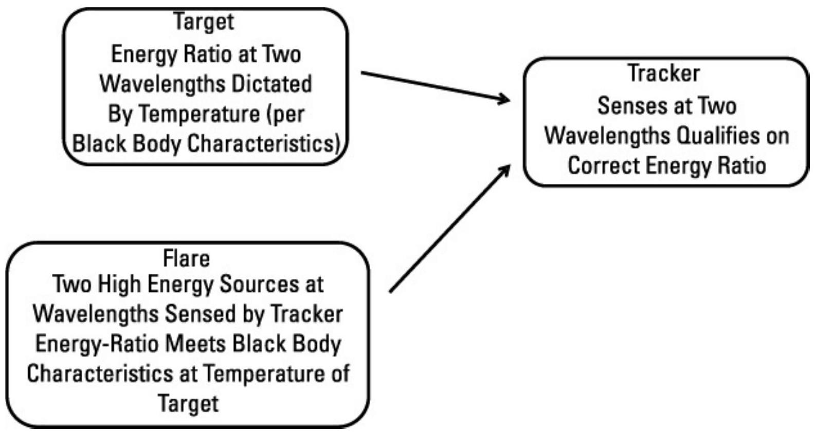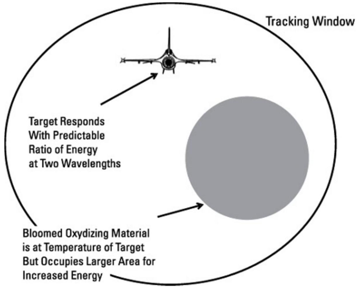 为了使燃烧弹对双色传感器有效,它必须产生正确的能量比。这可以通过以适当温度发射,或者以更高温度发射,但确保两个被跟踪器感应波长的能量比正确来实现。