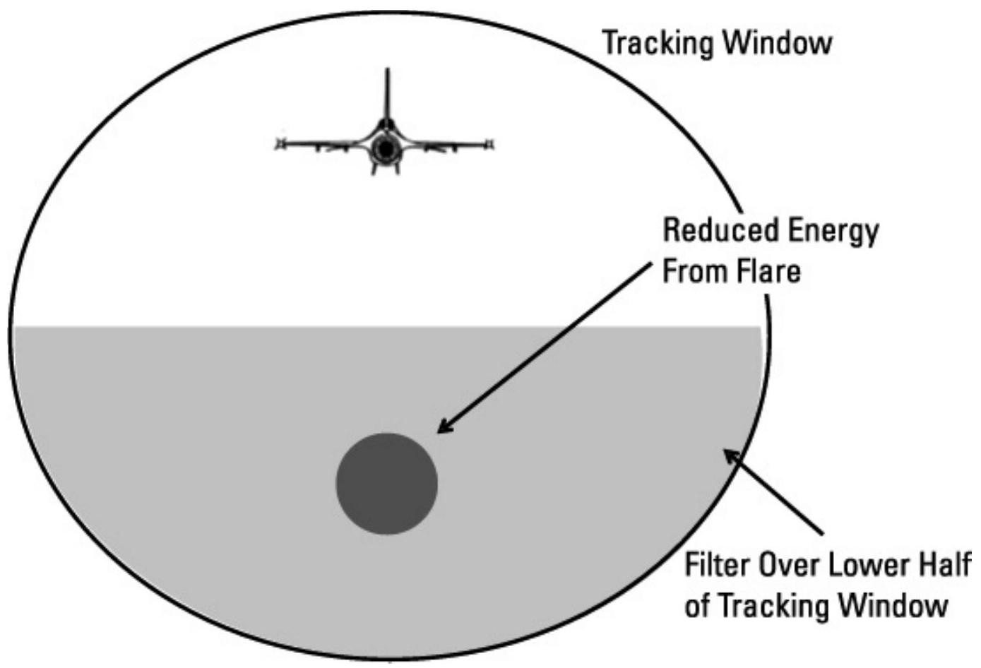 图 9.31 在跟踪窗口下半部分放置滤光器将导致跟踪器锁定目标,因为燃烧弹的能量被减少。