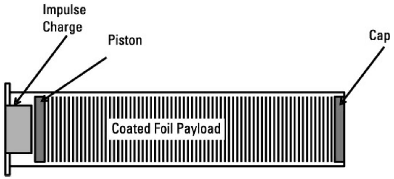 图 9.33 自燃诱饵的载荷由大量涂覆薄铁箔片组成,发射后展开并快速氧化,为热追踪导弹产生热目标。