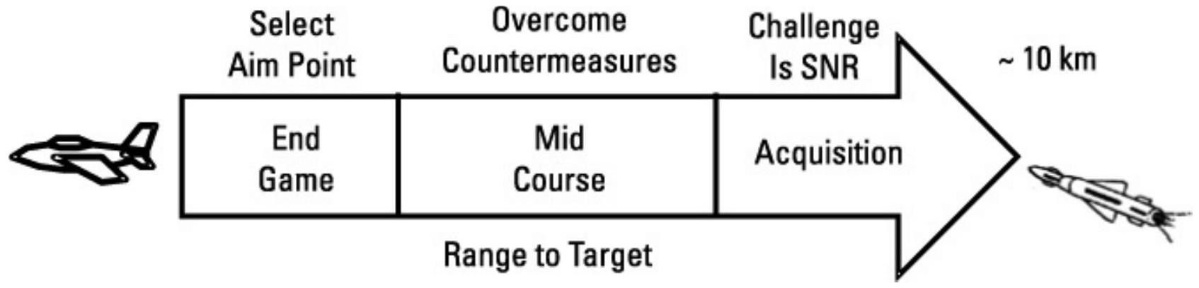 如图 9.37 所示,交战分为三个阶段:获取、中程飞行和末段。每个阶段都有其挑战。