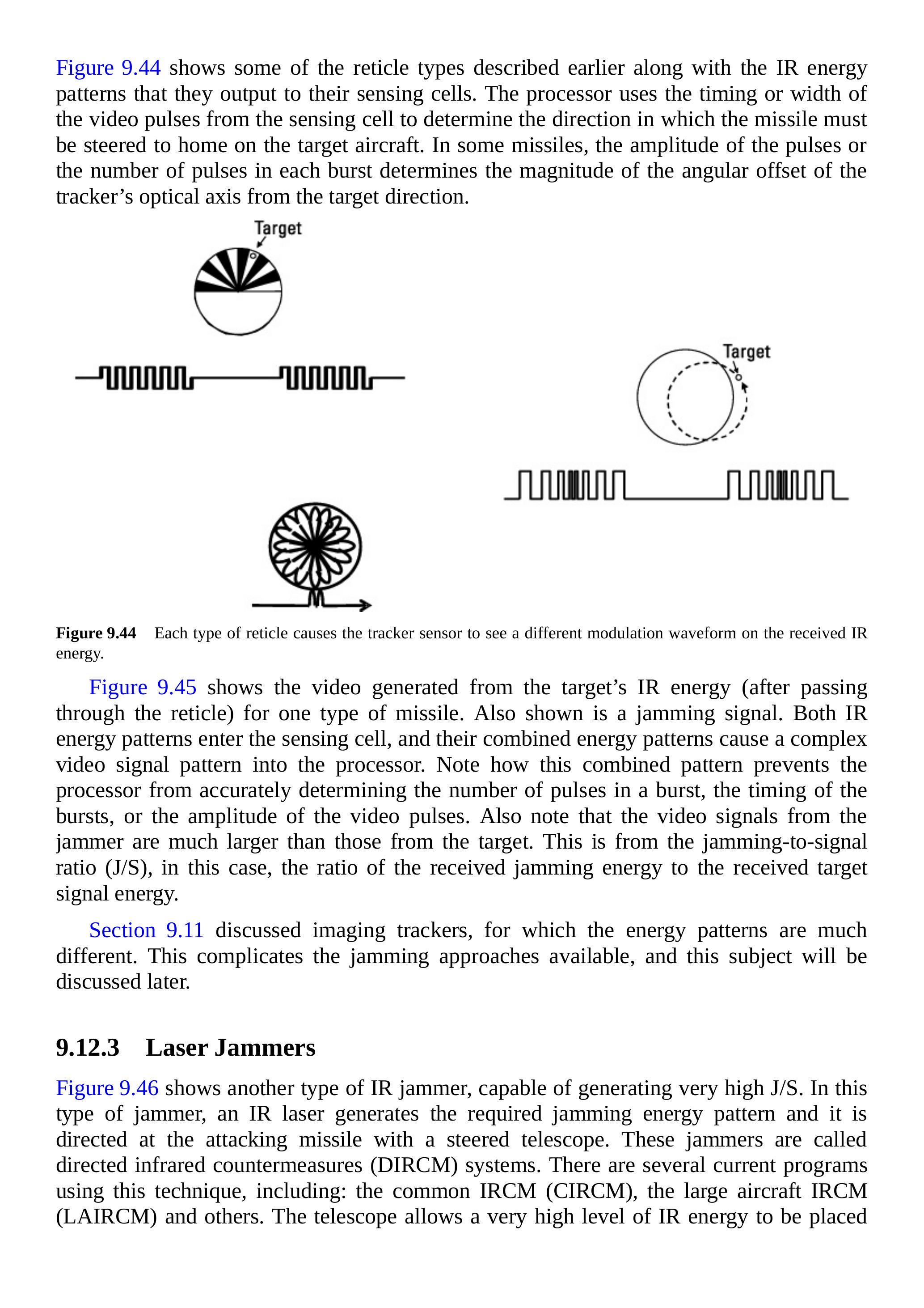 第 9.11 节讨论了成像跟踪器,其能量模式有很大不同。这增加了可用干扰方法的复杂性,相关内容将在后文讨论。