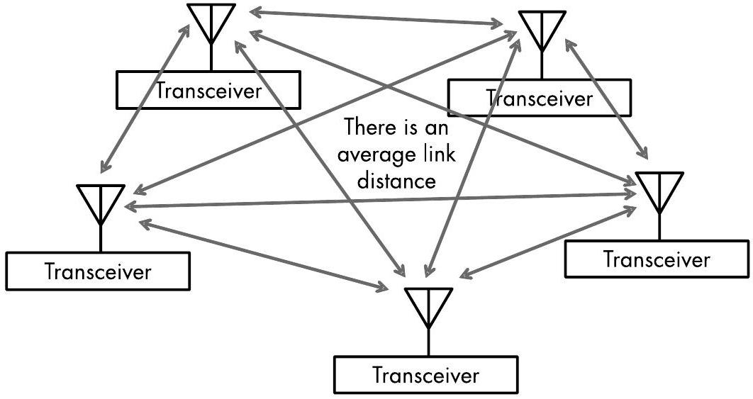 图10.5 在一个通信网络中,存在许多链路;其中一个站点正在发射,而所有其他站点都在接收。