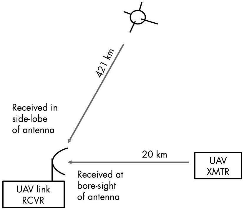 还需注意,雷达指向的是其目标而非卫星,因此卫星必须从雷达天线的旁瓣方向进行干扰。