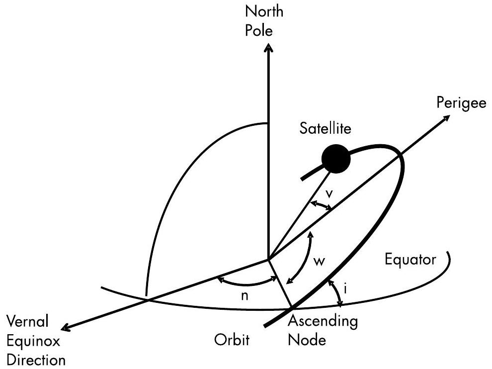 | w | 近地点幅角(Argument of Perigee) | 升交点与近地点之间的角度 |