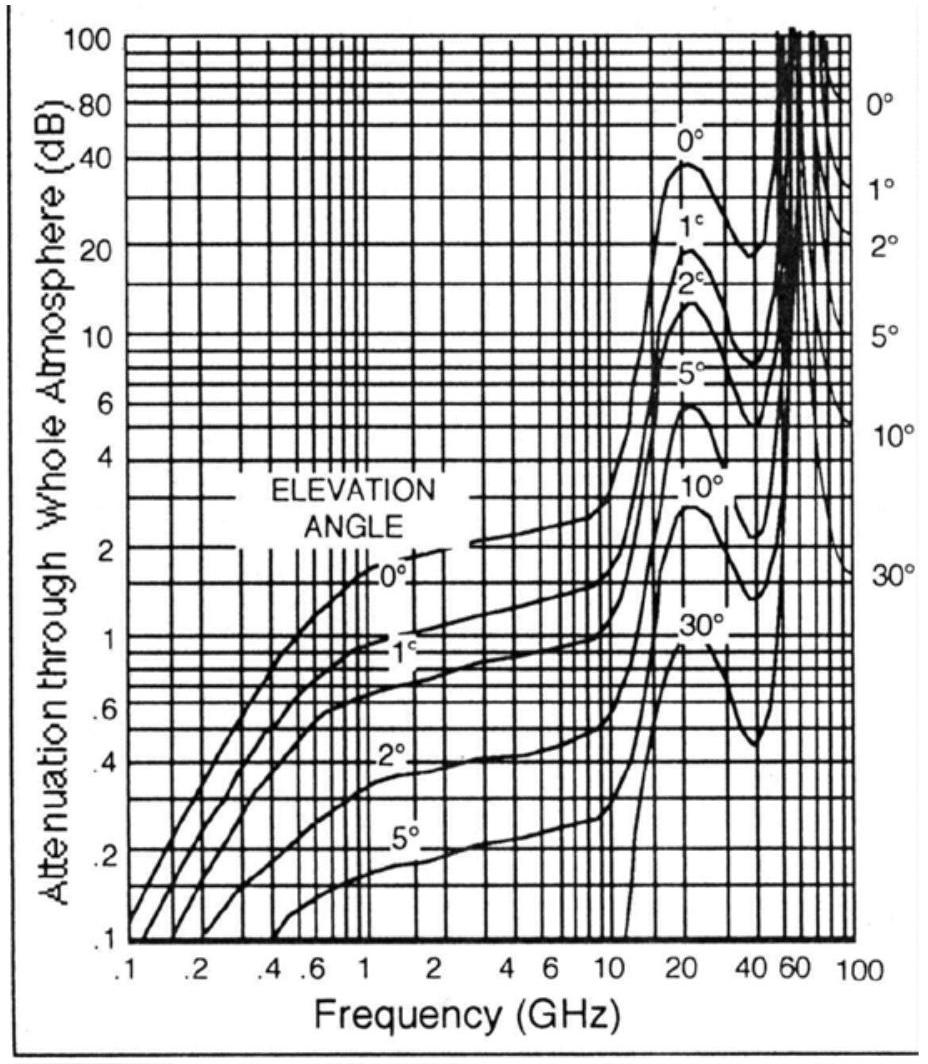 图5.1 地球表面附近的大气衰减(atmospheric attenuation)。