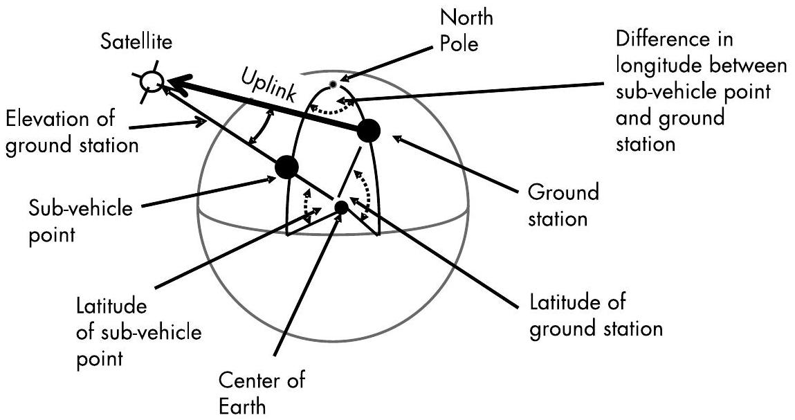 这种几何关系适用于所有卫星链路:包括上行链路(uplinks)和下行链路(downlinks)。本章后续将讨论上行链路与下行链路之间的差异。