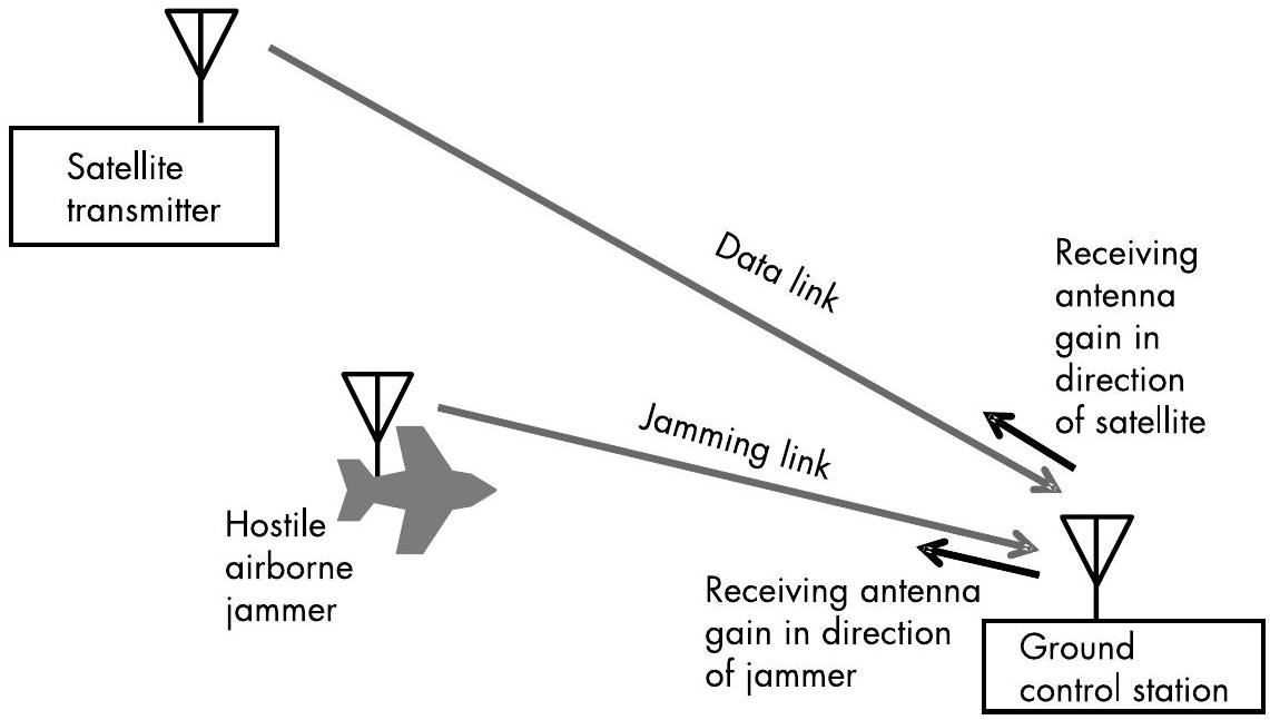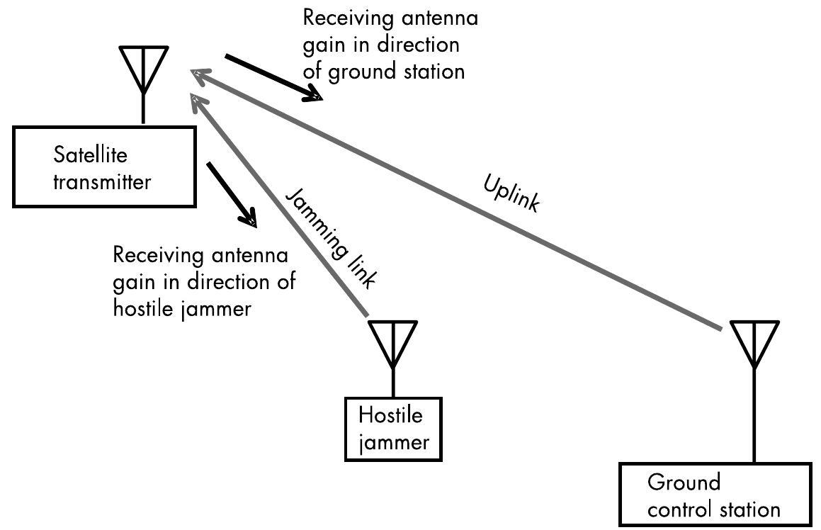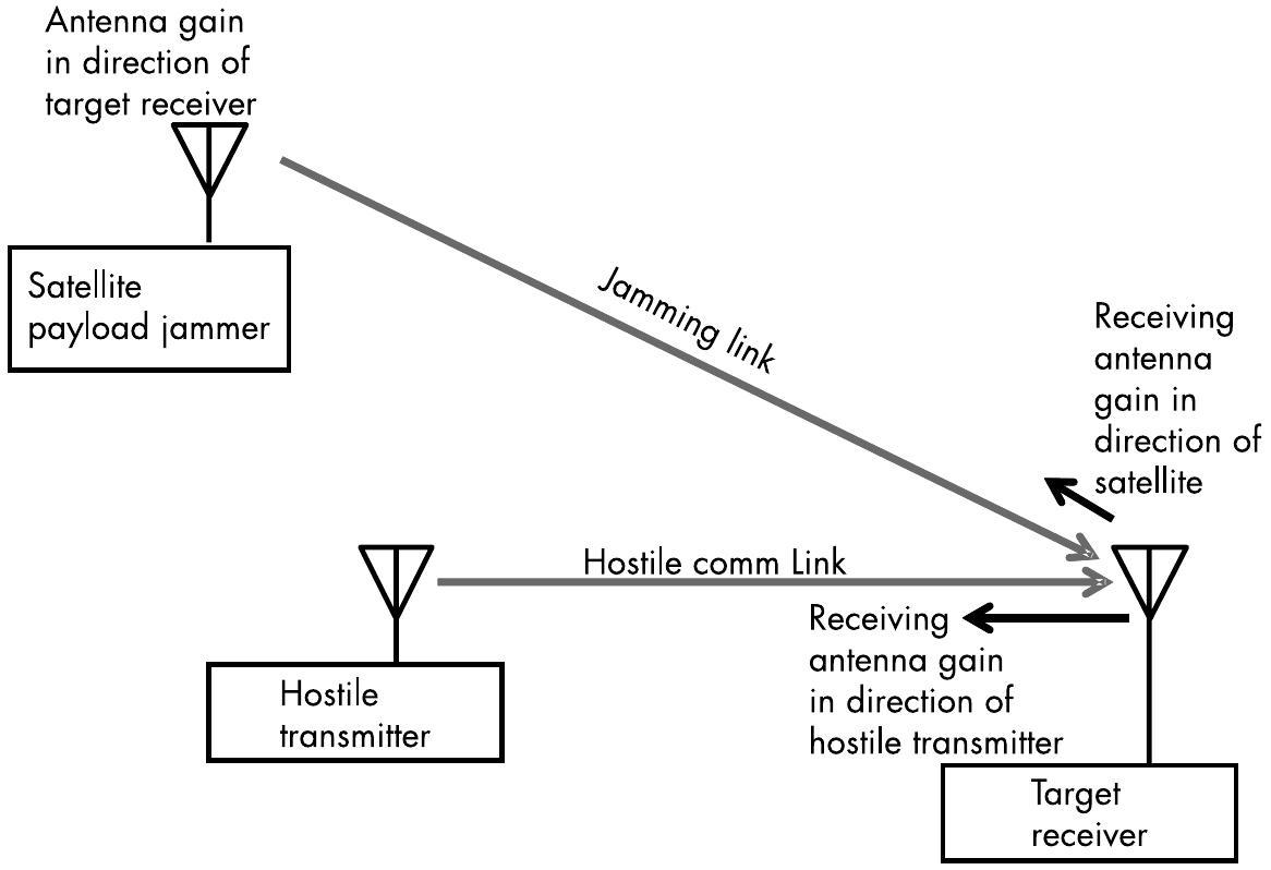 此外,传至卫星的信号极化方式(polarization)可能与其传至预期接收机的极化方式不同,这可能会降低卫星接收到的信号功率。在分析中,通常宜假设敌方发射机对其预期接收机采用了最佳的天线指向和极化配置。