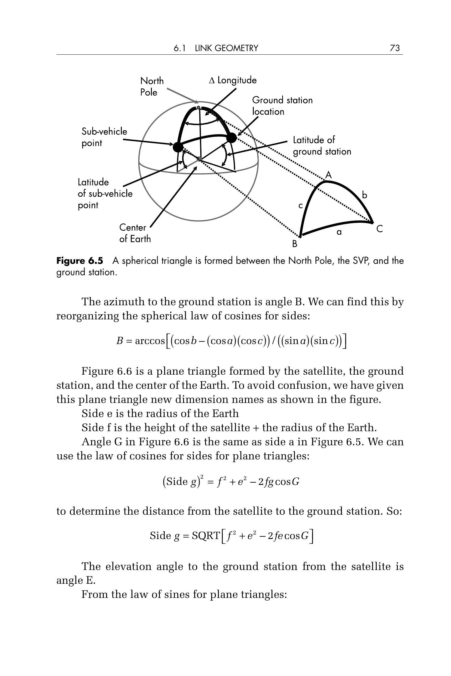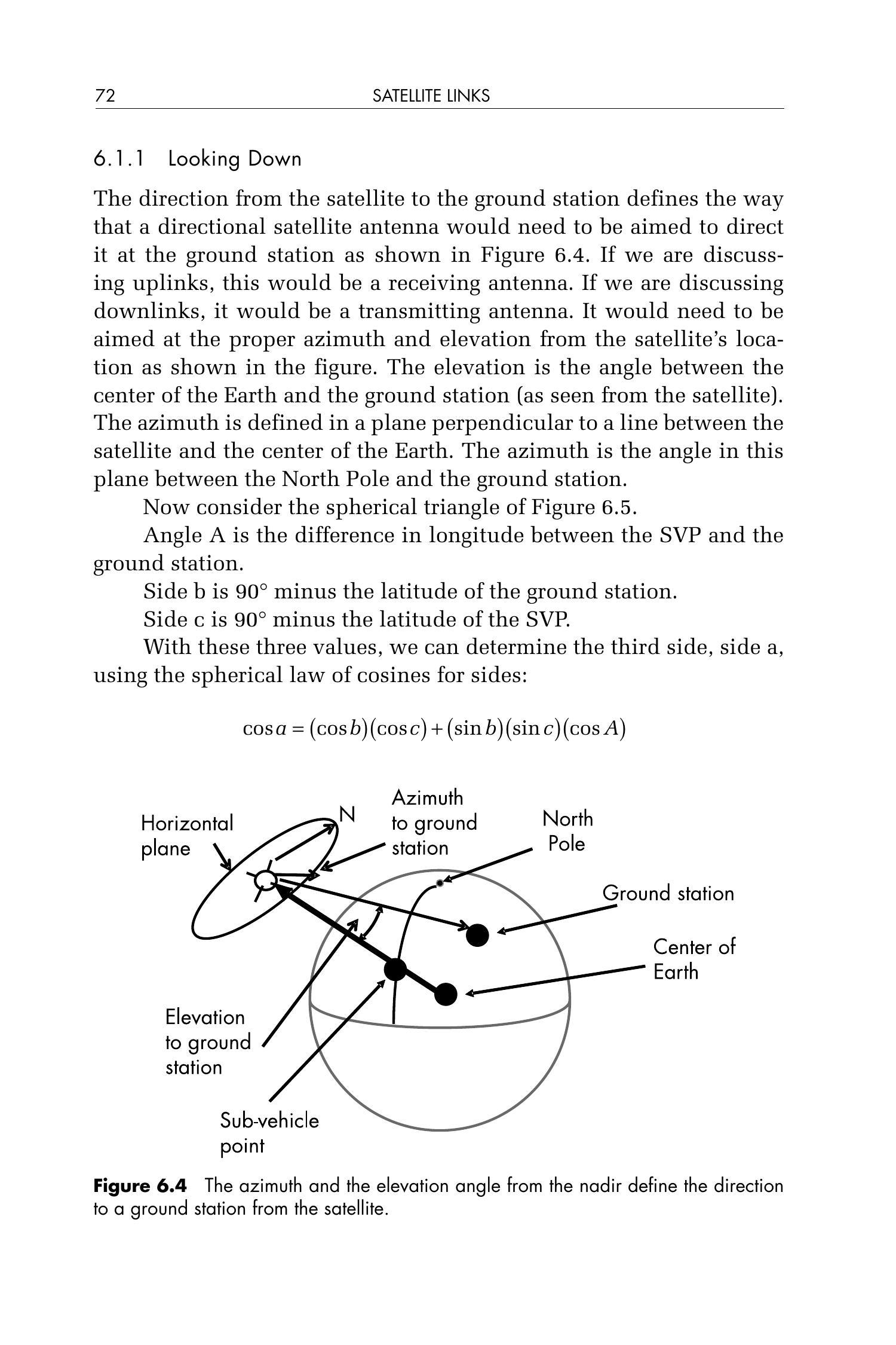 图 6.5 中的角 \(B\) 是从卫星指向地面站的方位角(azimuth)。
