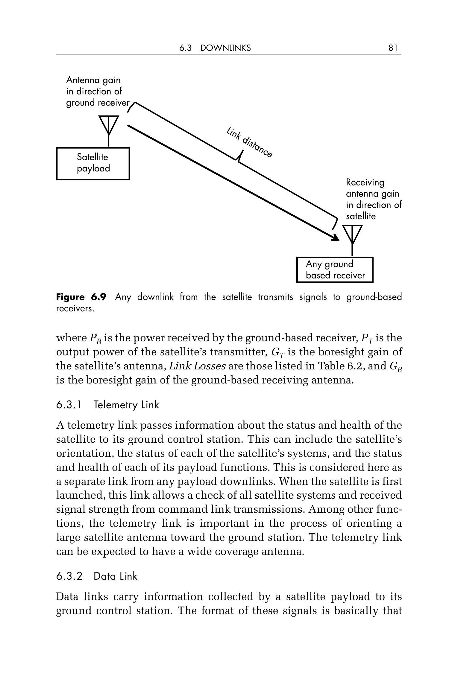 图 6.9 任何从卫星发出的下行链路均将信号发送至地基接收机(ground-based receivers)。