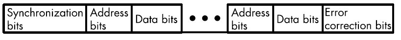 图 6.7 数字链路所承载的信号包括同步比特、地址比特、数据比特和纠错比特(error correction bits)。