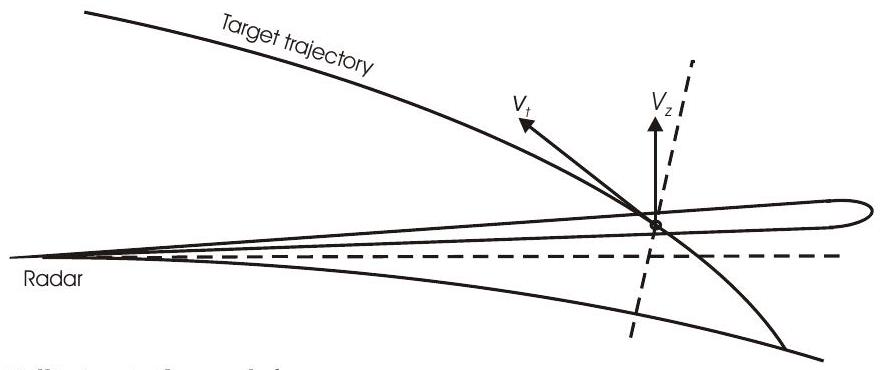 弹道导弹搜索栅栏的几何结构如图2.4所示。大多数搜索栅栏应用需要覆盖有限的方位扇区 \(A_{m}\),通常为 \(60^{\circ}-180^{\circ}\),而非空中监视中的 \(360^{\circ}\) 覆盖。最小俯仰角通常接近零,以最小化目标发射与探测之间的延迟,但在导弹防御或敌方炮位定位时,可能设为 \(1^{\circ}-2^{\circ}\),以减少大气衰减或地面杂波。