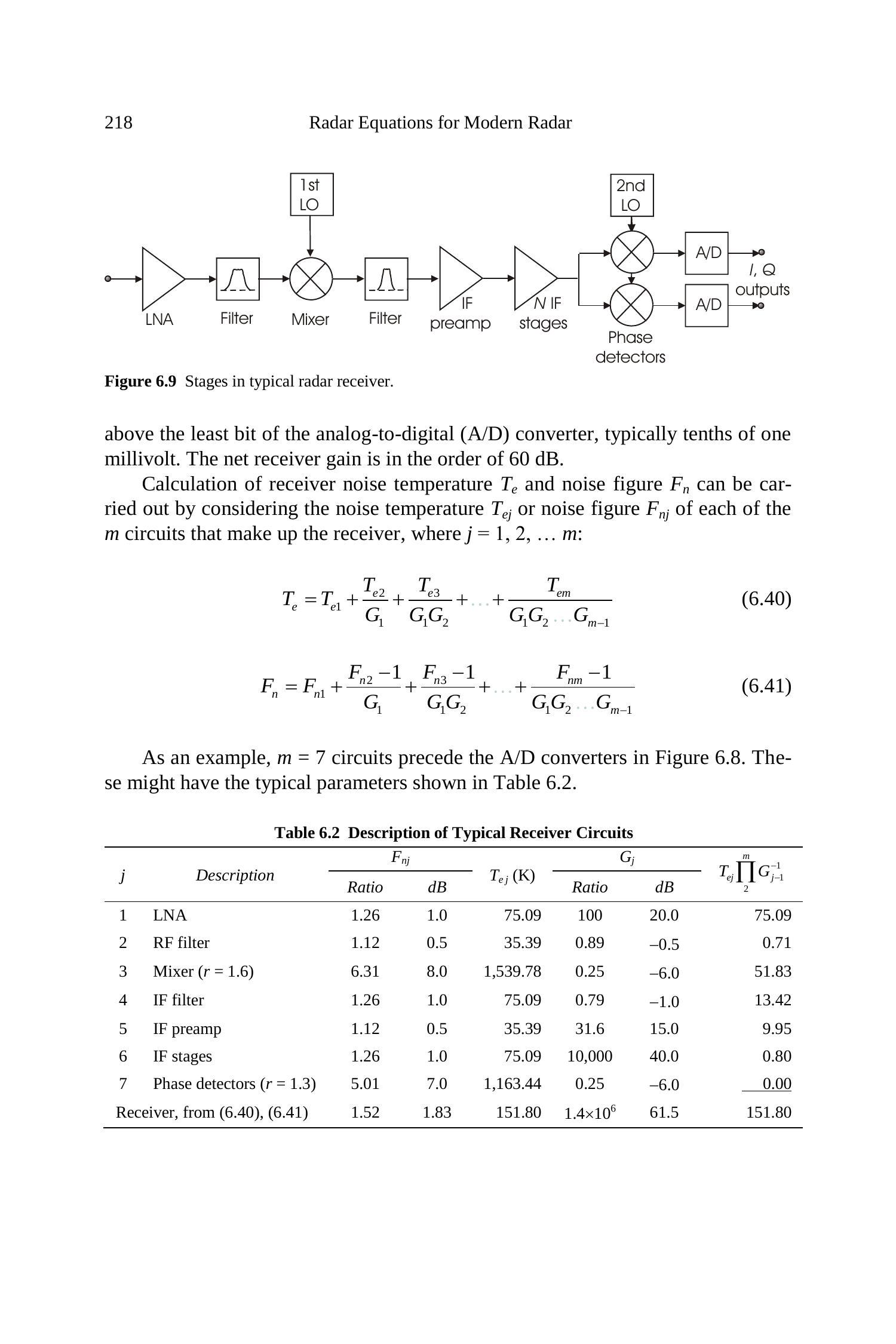 图 6.9 典型雷达接收机中的各级。