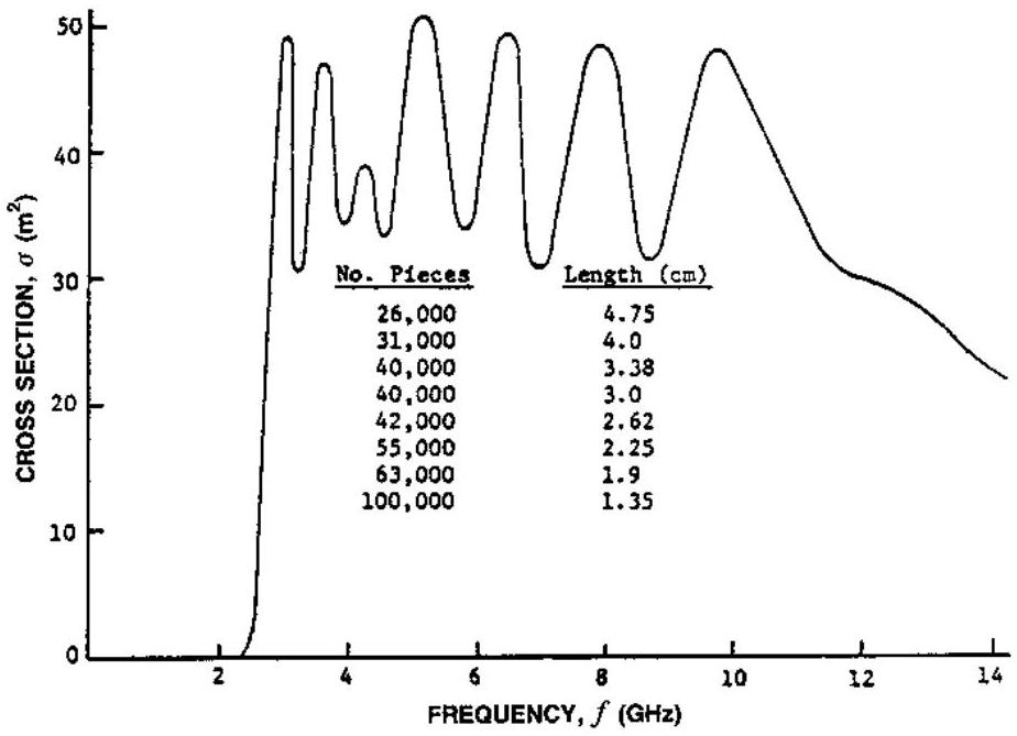 图 9.12 一组箔条的雷达散射截面积。(来源:[26]。© 1999, Artech House,经许可转载。)