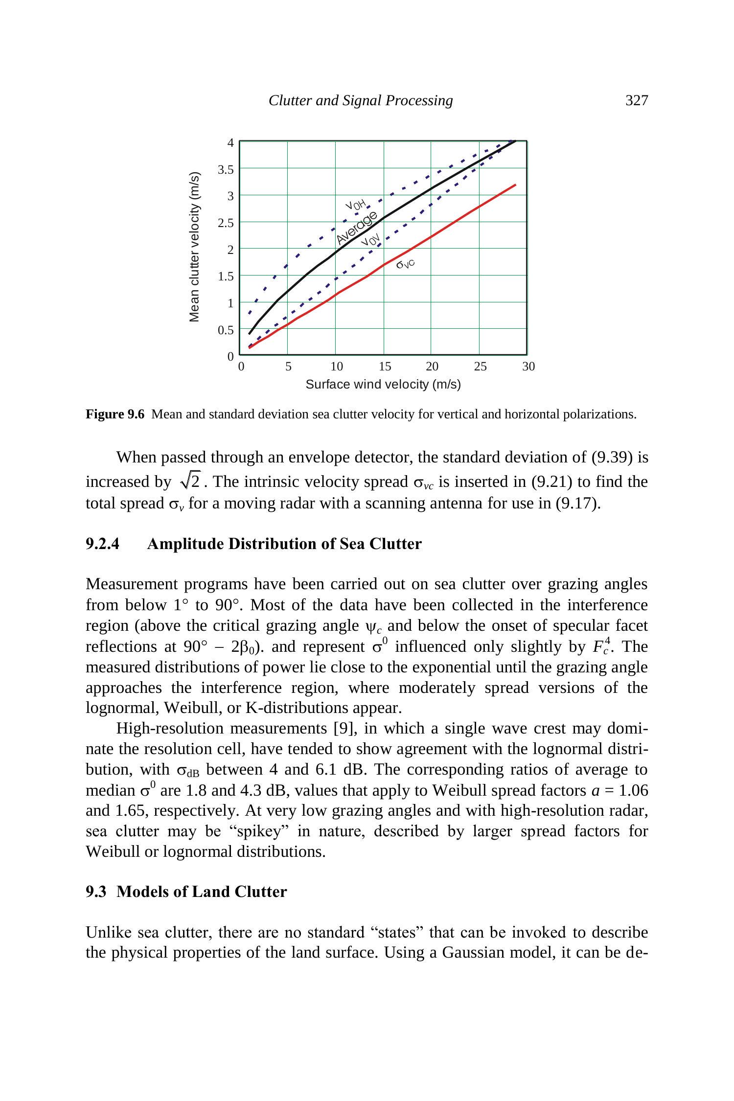 对于不同类型的杂波,根据需要对其功率谱和振幅分布进行建模,以确定它们对信号处理改进因子以及第 10 章中讨论的目标检测损失的影响。