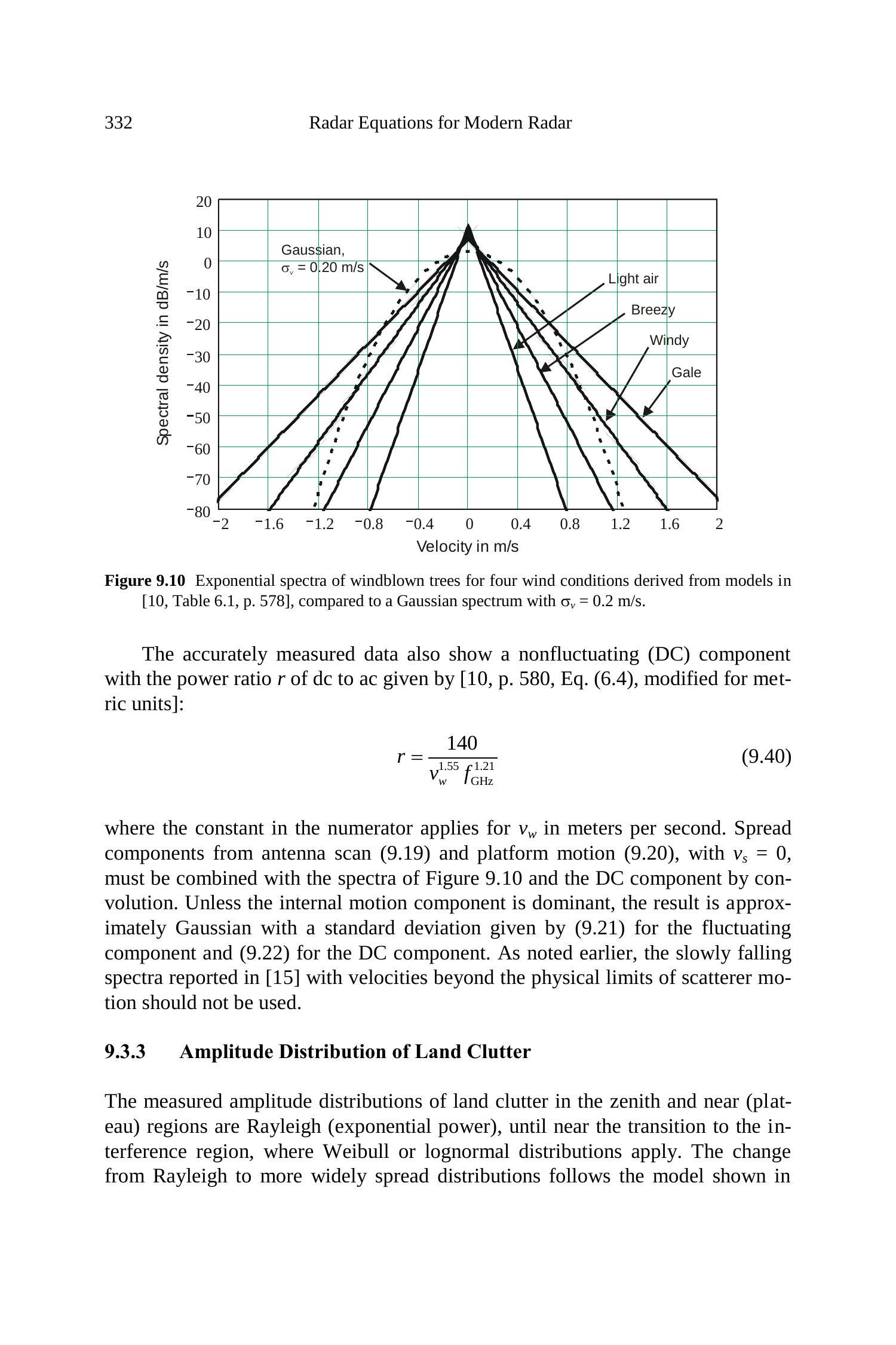 \({ }^{4}\) 我们用速度来表示杂波频谱,因为这是杂波散射体固有的属性,与雷达频率无关。