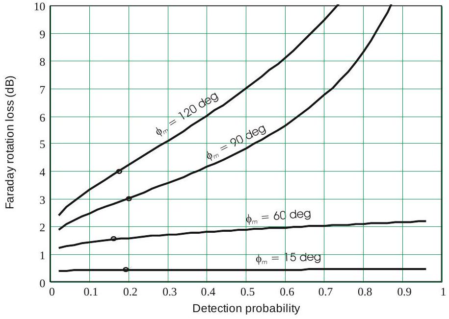 四个列出的情况的平均视觉检测损失为 2.1 dB。如果视觉过程的 \(P_{f a}\) 为 \(10^{-4}\),则损失为 2.9 dB;若为 \(10^{-6}\),则为 1.3 dB。目前似乎没有数据可以判断哪个估计更接近实际情况。