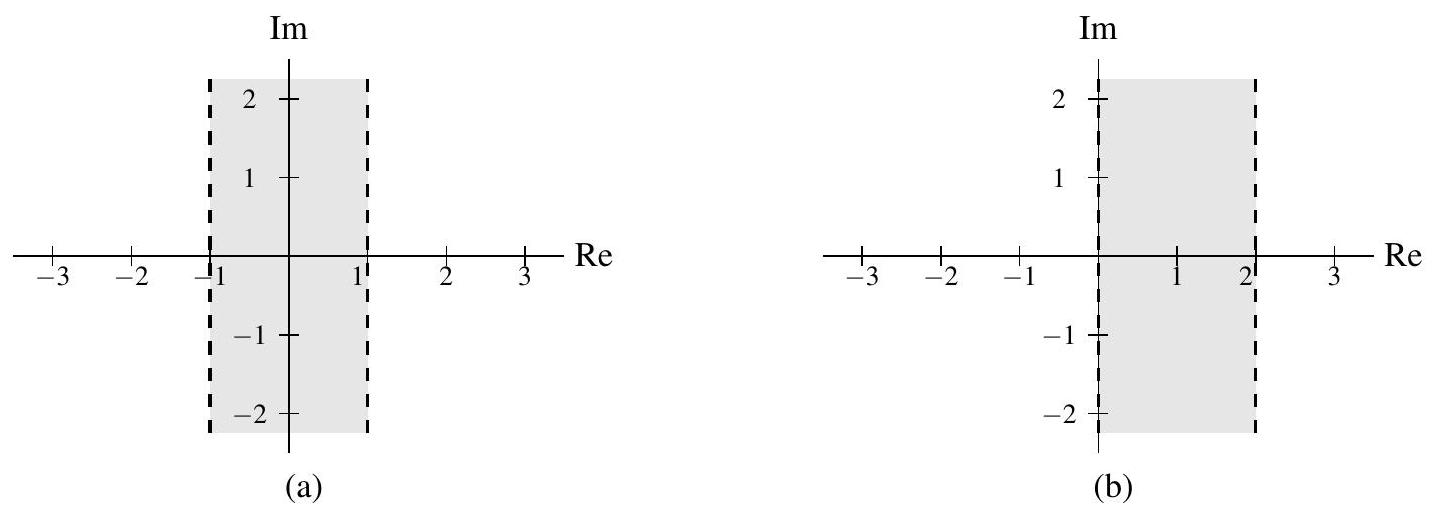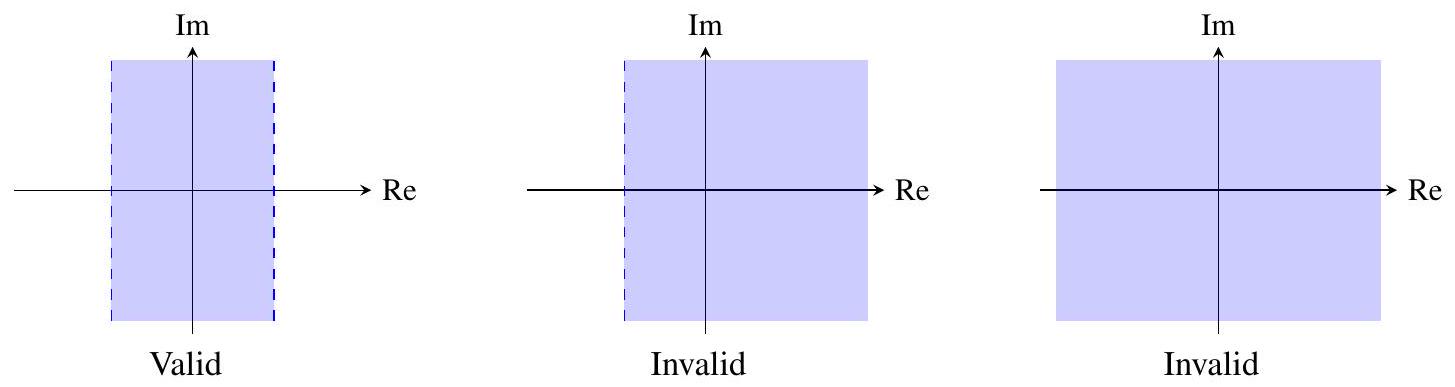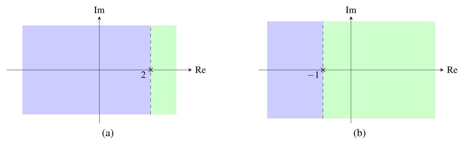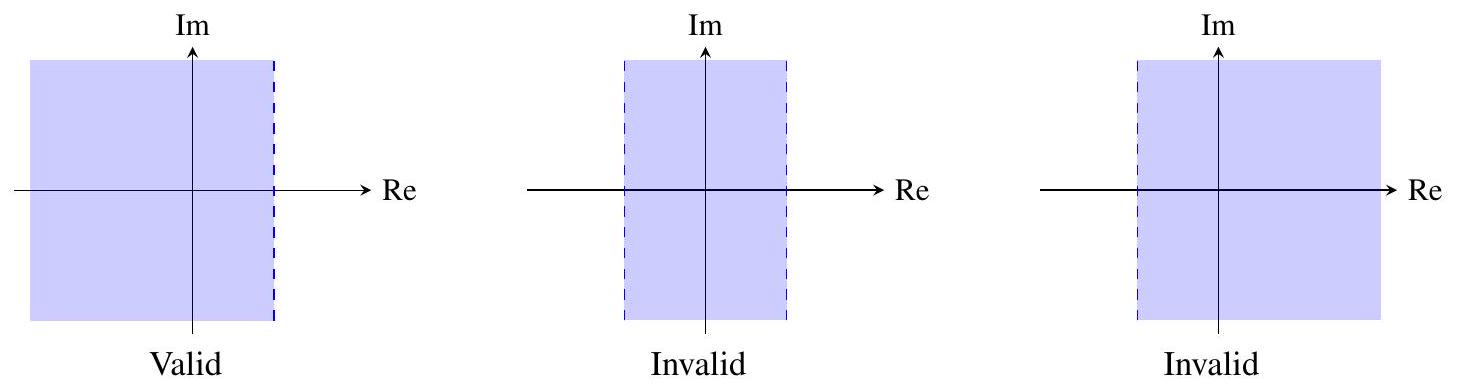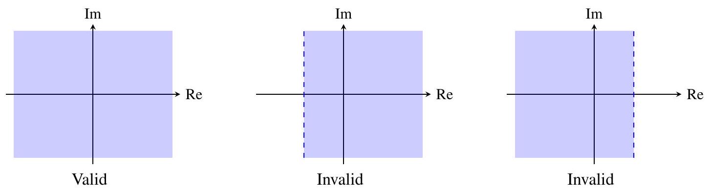 图7.8:作为拉普拉斯变换ROC的有效或无效集合示例。