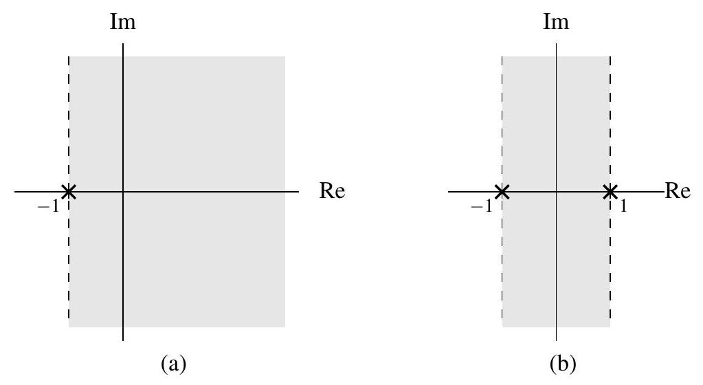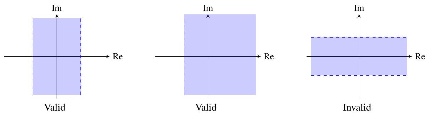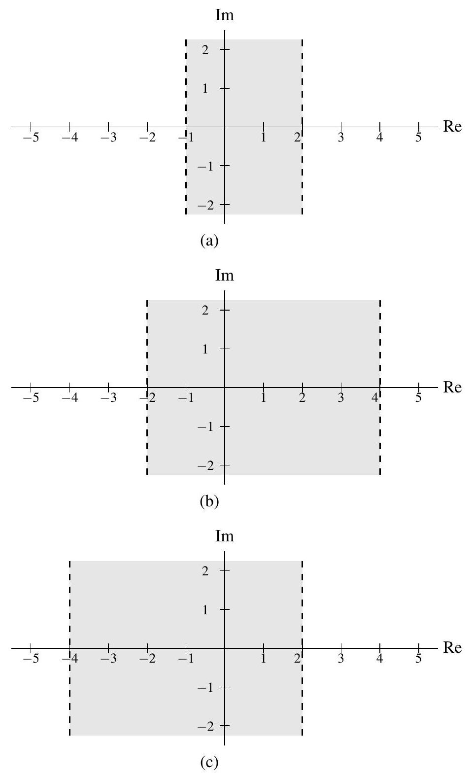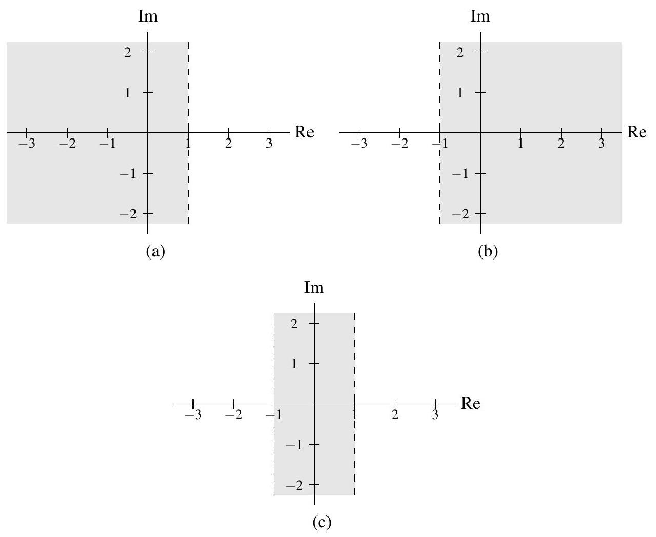图7.8:作为拉普拉斯变换ROC的有效或无效集合示例。