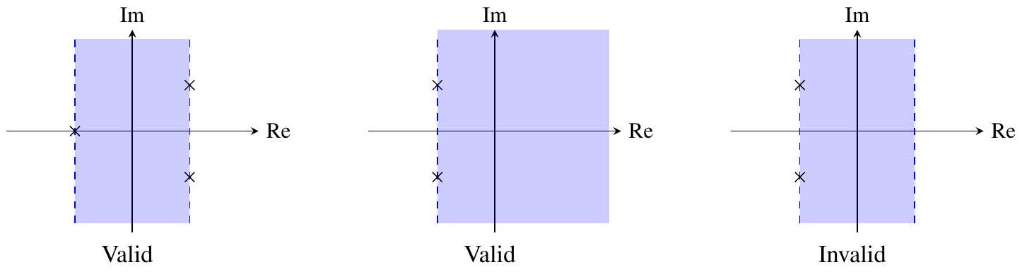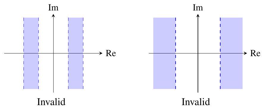 图7.9:作为有理拉普拉斯变换ROC的有效或无效集合示例。