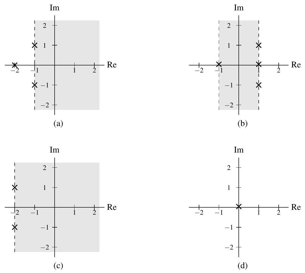 图 7.4:LHP 与 RHP 的示例。(a) 当 \(a<0\) 时的 LHP,(b) 当 \(a>0\) 时的 LHP,(c) 当 \(a<0\) 时的 RHP,(d) 当 \(a>0\) 时的 RHP。