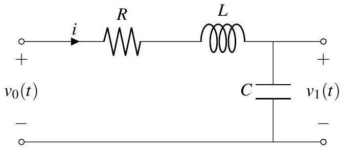 (d) \(\mathcal{D} v_{0}(t)=\frac{L}{R} \mathcal{D}^{2} v_{1}(t)+\mathcal{D} v_{1}(t)+\frac{1}{R C} v_{1}(t)\);\(H(s)=\frac{R C s}{L C s^{2}+R C s+1}\),适用于 \(\operatorname{Re}(s)>\operatorname{Re}\left(\frac{-R C+\sqrt{(R C)^{2}-4 L C}}{2 L C}\right)\);BIBO 稳定;带通滤波器,通带中心 \(\pm \frac{1}{\sqrt{L C}}\);
