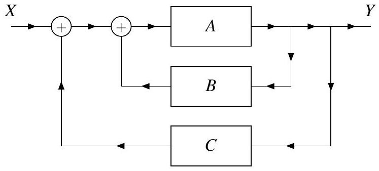 \(H(s)=\frac{A(s)}{1-A(s)[B(s)+C(s)]}\)。