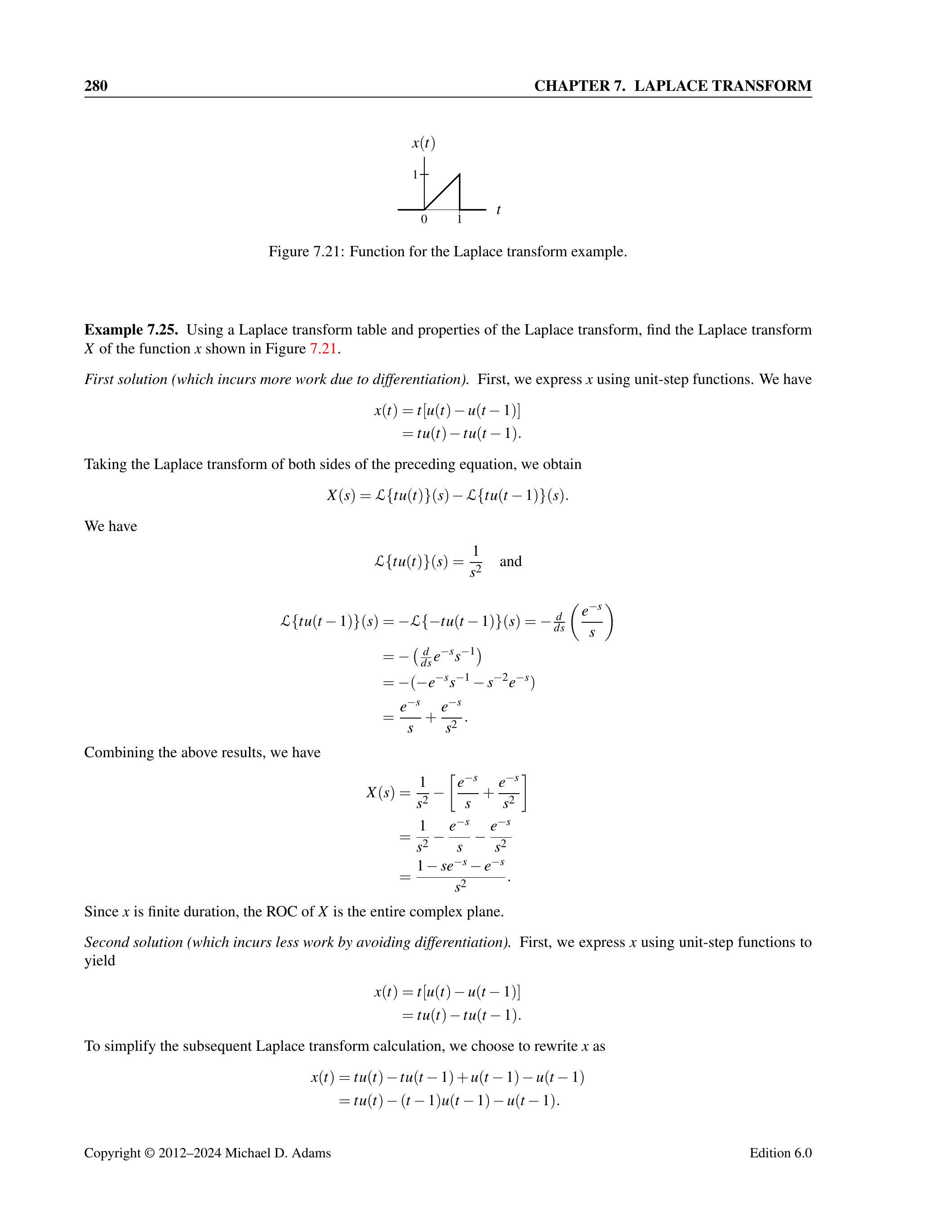 例 7.5(单位阶跃函数的拉普拉斯变换)。 求函数的拉普拉斯变换 \(X\)