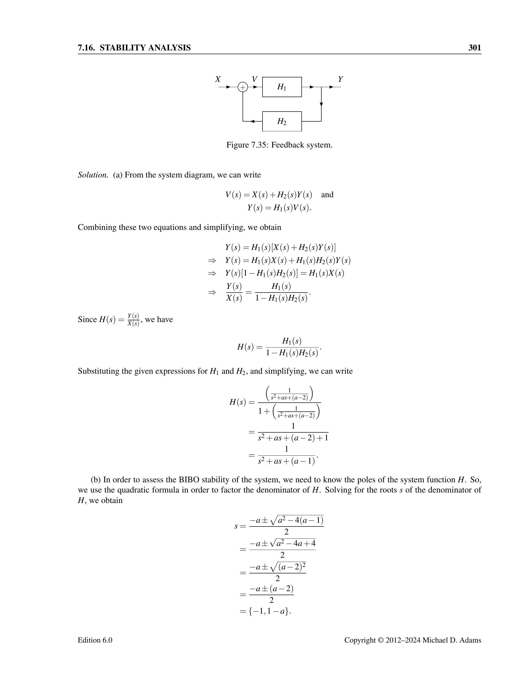 (d.ii) BIBO 稳定当且仅当 \(a>0\)(假设 \(a\neq 0\))。
