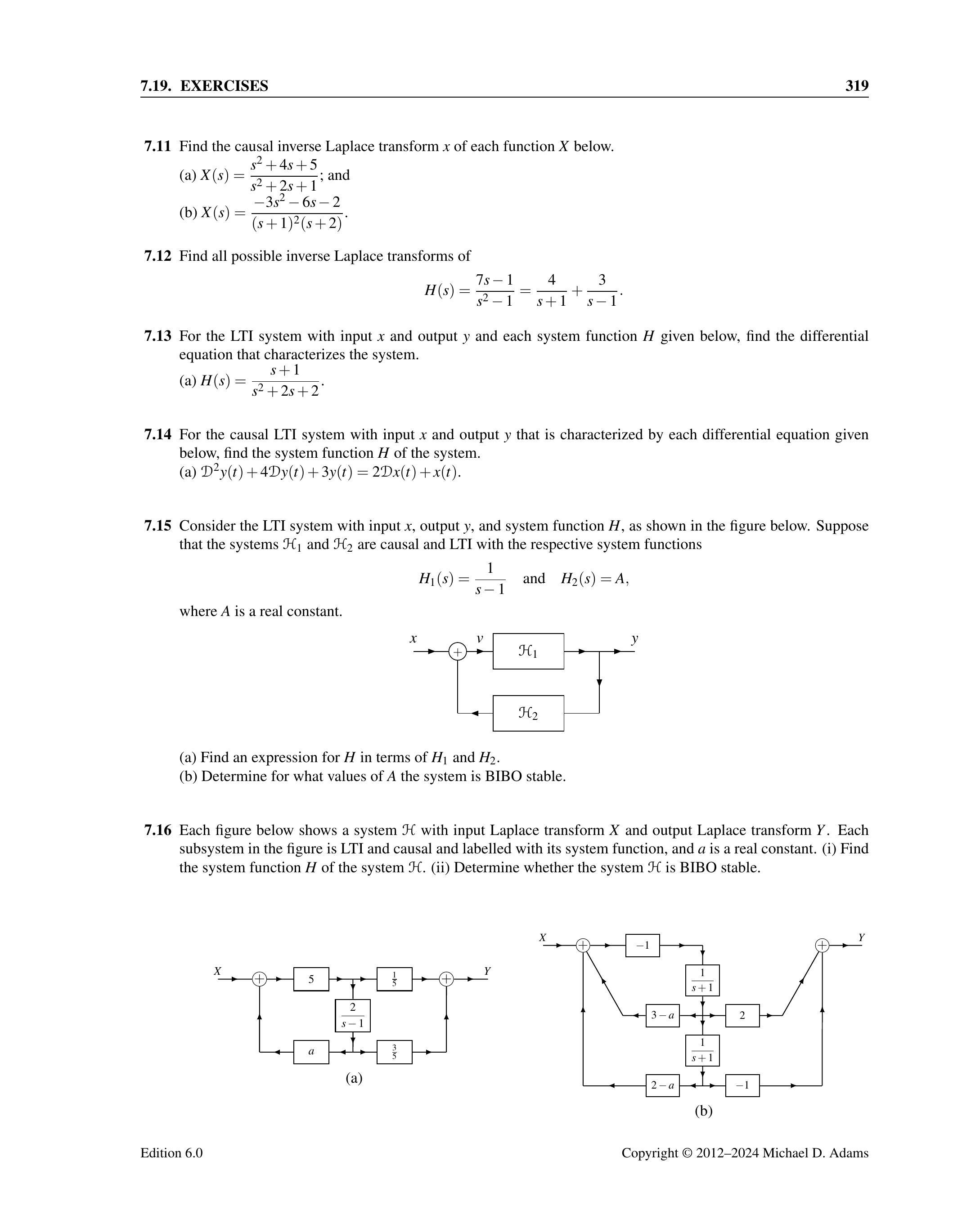 (b) \(H(s)=\frac{s+7}{(s-2)(s-3)}\),适用于 \(\operatorname{Re}(s)>3\)。