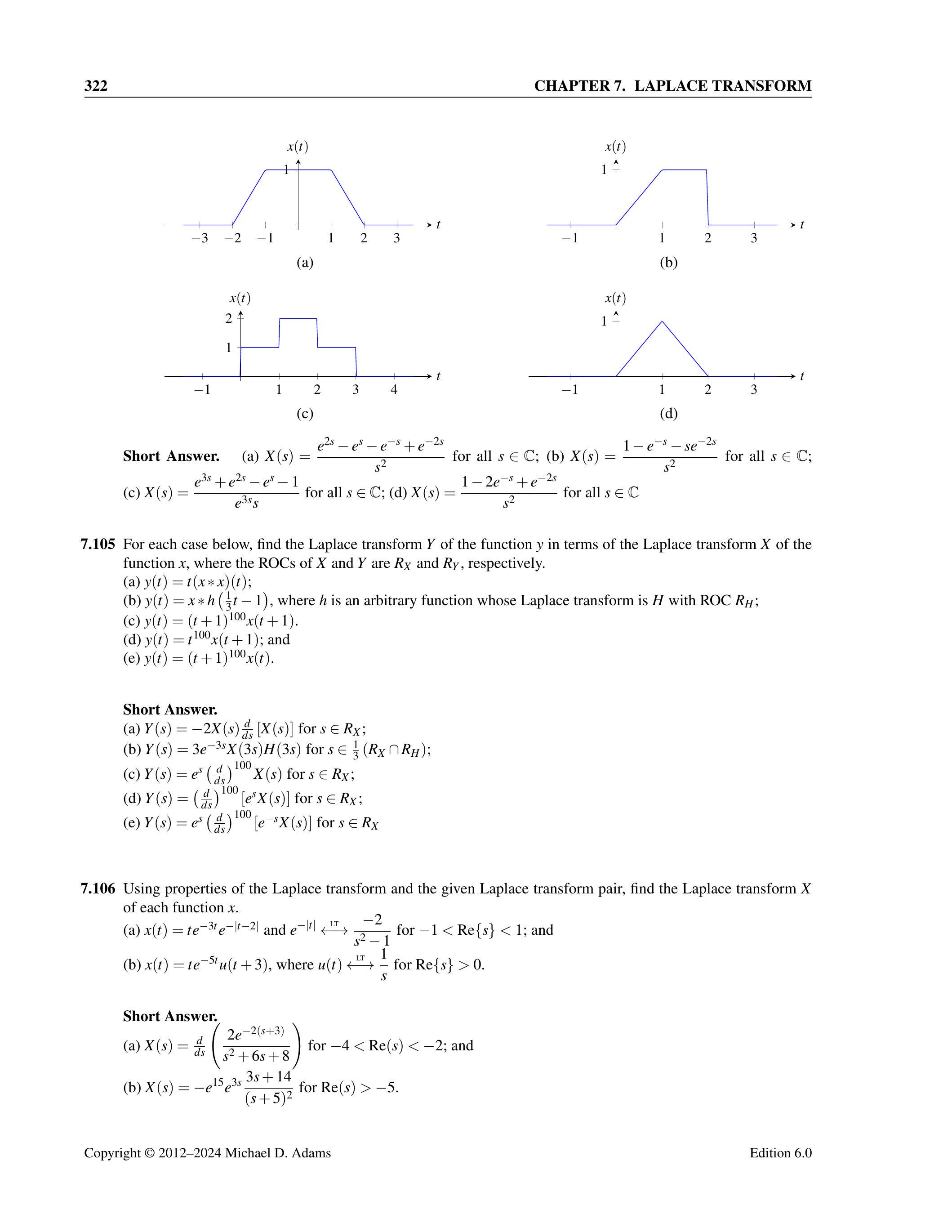 (b) \(X(s)=7\left(e^{-2 s}-e^{-3 s}\right)\),适用于所有 \(s \in \mathbb{C}\);