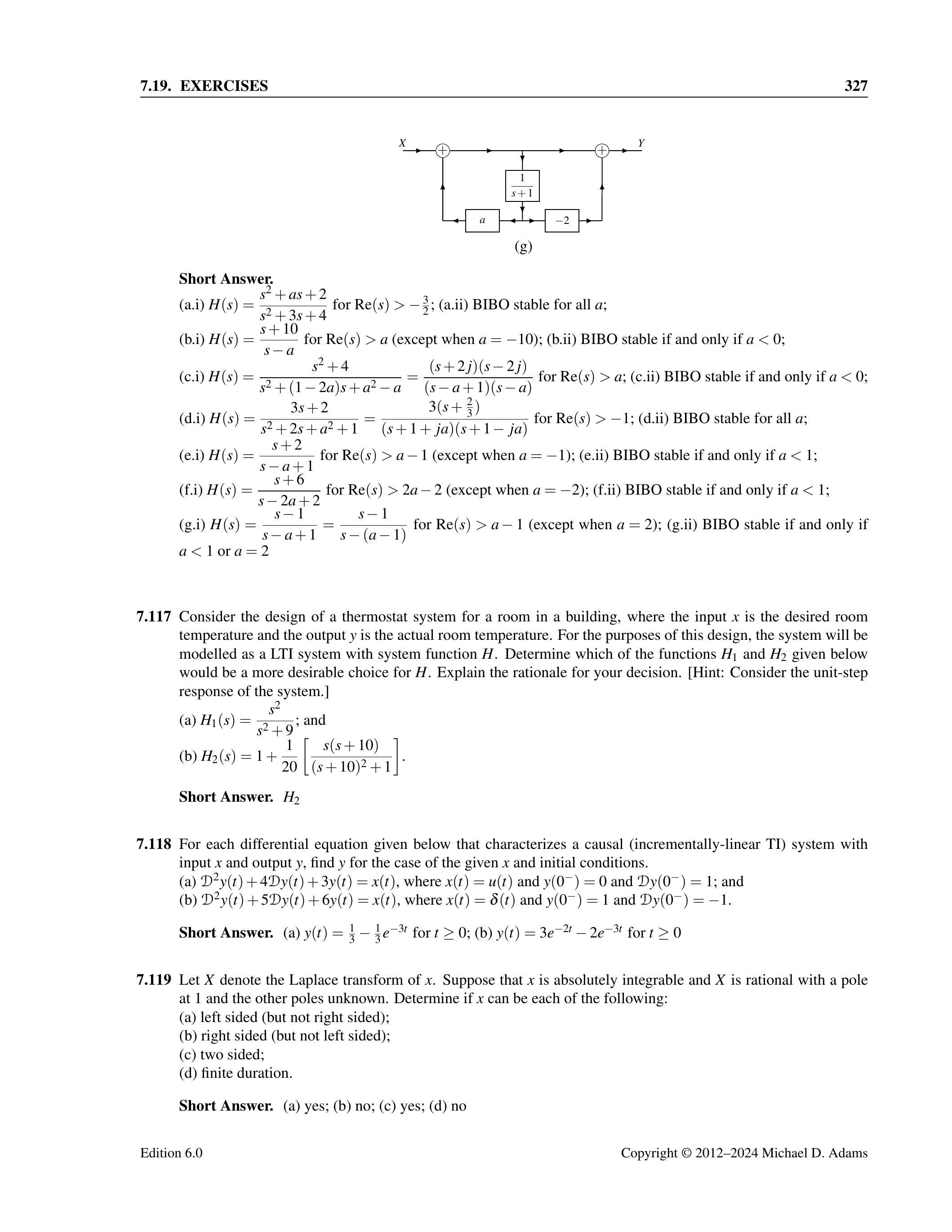 (g.i) \(H(s)=\frac{s-1}{s-a+1}=\frac{s-1}{s-(a-1)}\),适用于 \(\operatorname{Re}(s)>a-1\)(当 \(a=2\) 时除外);